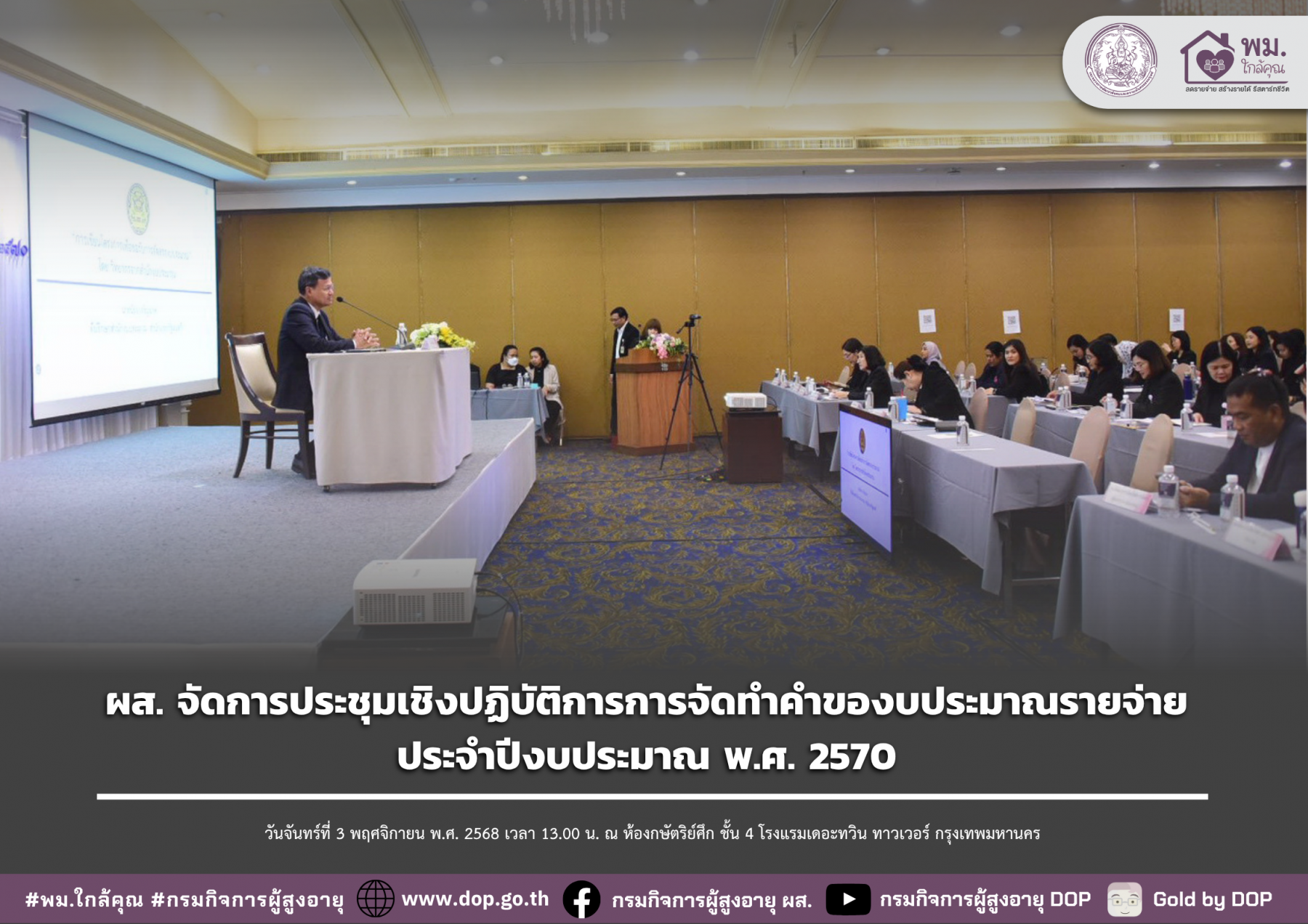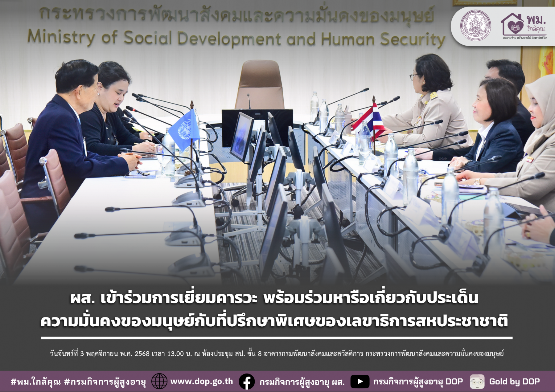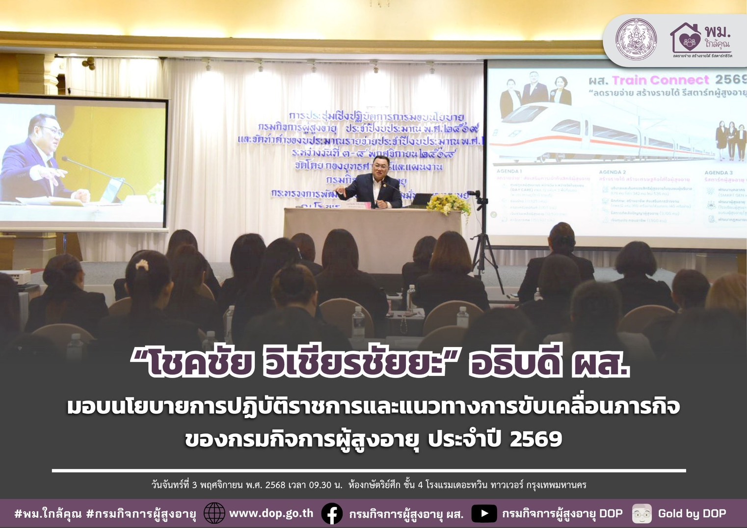 ผส. ร่วมงานถวายผ้าพระกฐินพระราชทาน ประจำปี 2568 วันเสาร์ที่ 1 พฤศจิกายน พ.ศ. 2568 เวลา 09.00 น. พระบาทสมเด็จพระเจ้าอยู่หัว ทรงพระกรุณาโปรดเกล้าฯ พระราชทานผ้าพระกฐิน ให้กระทรวงการพัฒนาสังคมและความมั่นคงของมนุษย์ นำไปถวายวัดเสนหา ตำบลพระปฐมเจดีย์ อําเภอเมืองนครปฐม จังหวัดนครปฐม โดยมีนายอัครา พรหมเผ