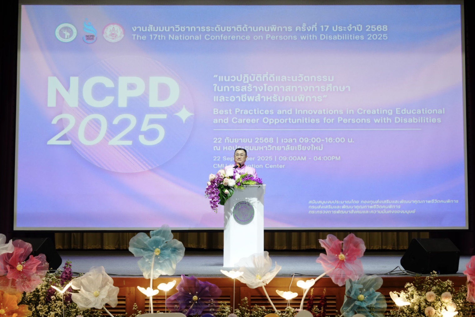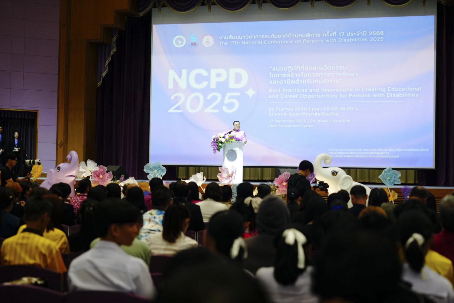 วันจันทร์ที่ 22 กันยายน พ.ศ. 2568 เวลา 10.00 น. นายธนสุนทร สว่างสาลี อธิบดีกรมกิจการผู้สูงอายุ มอบหมายให้ นางพรนิภา มาสิลีรังสี รองอธิบดีกรมกิจการผู้สูงอายุ ร่วมงานสัมมนาวิชาการระดับชาติด้านคนพิการ ครั้งที่ 17 ประจำปี 2568 ภายใต้หัวข้อ “แนวปฏิบัติที่ดีและนวัตกรรมในการสร้างโอกาสทางการศึกษาและอาชีพสำหรับคนพิการ” The 17th National Conference on Persons with Disabilities (NCPD 2025) “Best Practices and Innovations in Creating Educational and Career Opportunities for Persons with Disabilities” ซึ่งจัดโดยกระทรวงการพัฒนาสังคมและความมั่นคงของมนุษย์ โดยกรมส่งเสริมและพัฒนาคุณภาพชีวิตคนพิการ ร่วมกับ มหาวิทยาลัยเชียงใหม่ สถาบันการศึกษา และเครือข่าย จำนวนกว่า 90 แห่ง เพื่อให้เกิดการแลกเปลี่ยนเรียนรู้ด้านงานวิจัย งานวิชาการ นวัตกรรม และพัฒนาเทคโนโลยีด้านการส่งเสริมและพัฒนาคุณภาพชีวิตคนพิการ โดยมี นายโชคชัย วิเชียรชัยยะ อธิบดีกรมส่งเสริมและพัฒนาคุณภาพชีวิตคนพิการ เป็นประธานในพิธีเปิดฯ พร้อมด้วย ศาสตราจารย์ ดร.นายแพทย์พงษ์รักษ์ ศรีบัณฑิตมงคล อธิการบดีมหาวิทยาลัยเชียงใหม่ รองศาสตราจารย์ ดร.สยาม เจริญเสียง รองอธิการบดีอาวุโสฝ่ายวิชาการ มหาวิทยาลัยเทคโนโลยีพระจอมเกล้าธนบุรี คณะผู้บริหารกระทรวง พม. และคณะผู้บริหารมหาวิทยาลัยเชียงใหม่ มหาวิทยาลัยเทคโนโลยีพระจอมเกล้าธนบุรี ผู้แทนคณาจารย์ สถาบันการศึกษา คณะวิทยากร ผู้แทนหน่วยงานองค์กรคนพิการ เข้าร่วมงาน ณ หอประชุมมหาวิทยาลัยเชียงใหม่ จังหวัดเชียงใหม่