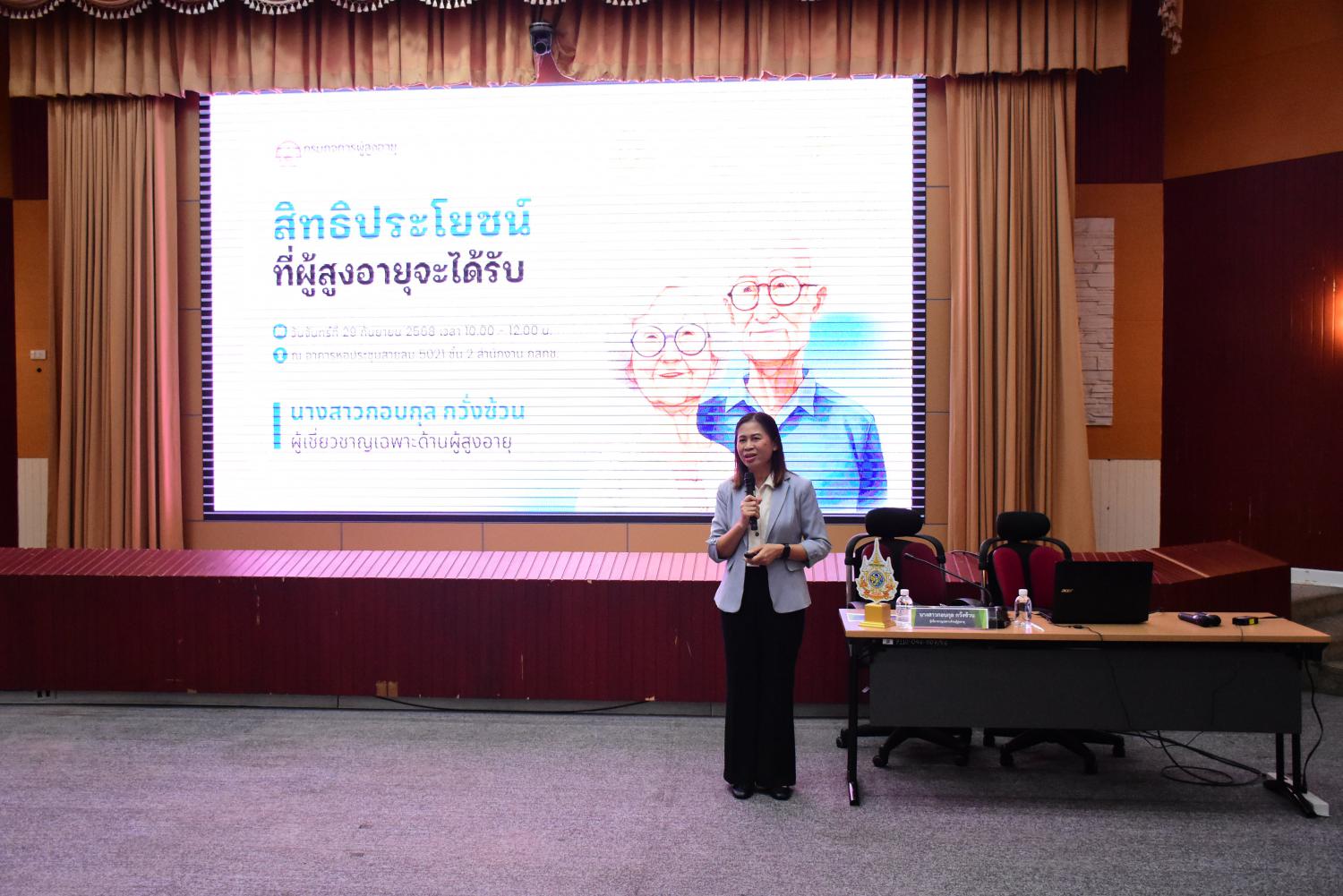 วันจันทร์ที่ 29 กันยายน พ.ศ. 2568 เวลา 10.00 น. นายธนสุนทร สว่างสาลี อธิบดีกรมกิจการผู้สูงอายุ มอบหมายให้ นางสาวกอบกุล กวั่งซ้วน ผู้เชี่ยวชาญเฉพาะด้านผู้สูงอายุ เป็นวิทยากรบรรยายในหัวข้อ "สิทธิประโยชน์ที่ผู้สูงอายุจะได้รับ" ในโครงการเตรียมความพร้อมพนักงานครบเกษียณอายุ ประจำปี 2568 - 2570 ให้แก่พนักงานครบเกษียณอายุประจำปี 2568 - 2570 สำนักงานคณะกรรมการกิจการกระจายเสียง กิจการโทรทัศน์และกิจการโทรคมนาคมแห่งชาติ (สำนักงาน กสทช.) เพื่อให้ผู้เข้ารับการอบรมที่กำลังจะเป็นผู้สูงอายุ มีความรู้ความเข้าใจเกี่ยวกับสิทธิประโยชน์ที่ผู้สูงอายุของประเทศไทยจะได้รับ และสามารถนำความรู้ที่ได้ไปปรับใช้ในการวางแผนชีวิตหลังเกษียณได้อย่างเหมาะสม และสามารถดำรงชีวิตได้อย่างมีความสุข โดยมี ข้าราชการ พนักงานครบเกษียณอายุของสำนักงาน กสทช. และเจ้าหน้าที่ที่เกี่ยวข้องเข้าร่วม ณ อาคารหอประชุมสายลม 5021 ชั้น 2 สำนักงาน กสทช.