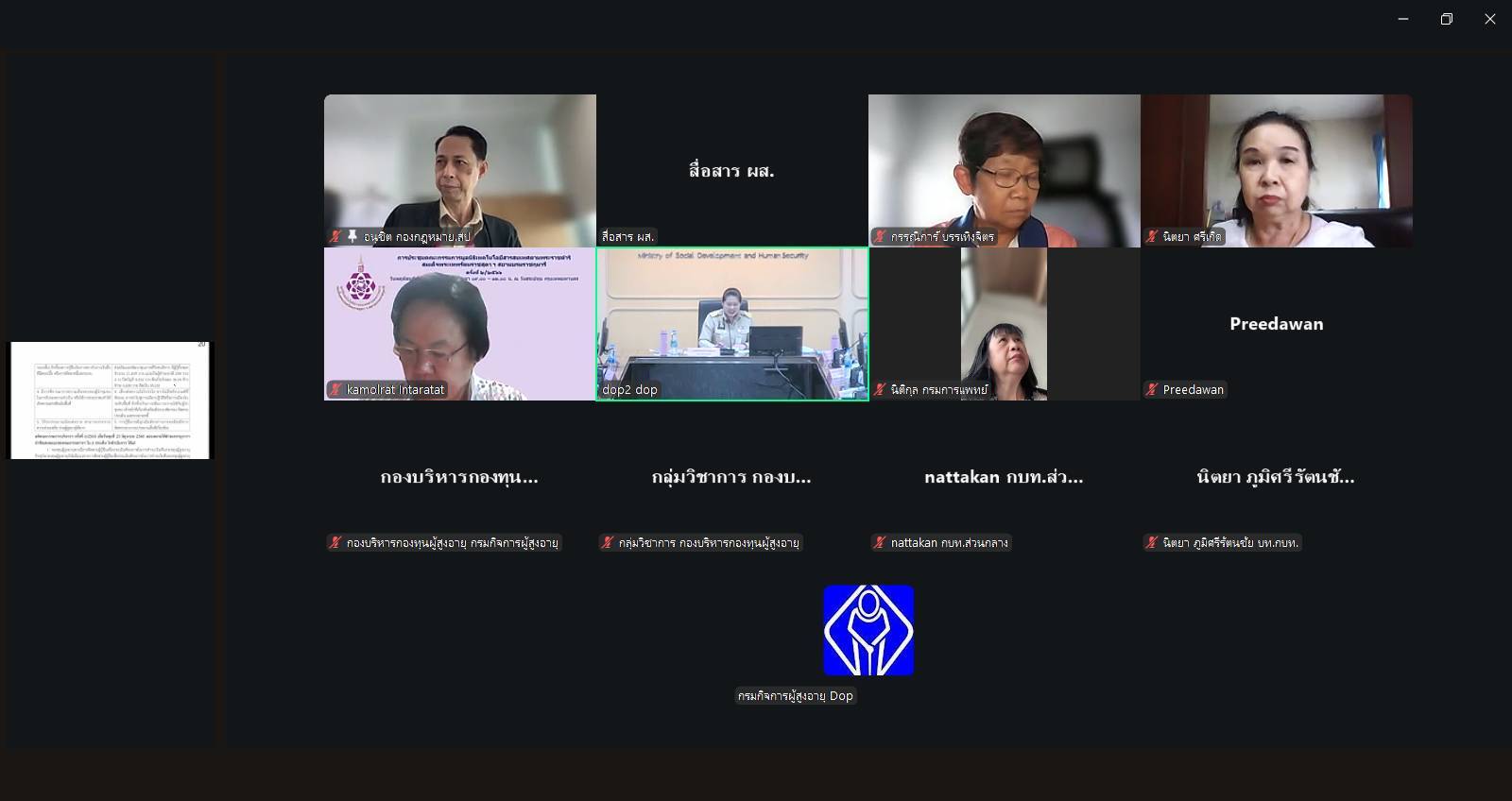 วันจันทร์ที่ 6 ตุลาคม พ.ศ. 2568 เวลา 13.30 น. นายโชคชัย วิเชียรชัยยะ อธิบดีกรมกิจการผู้สูงอายุ มอบหมายให้ นางวรรณภา สุขคง รองอธิบดีกรมกิจการผู้สูงอายุ เป็นประธานประชุมคณะอนุกรรมการพิจารณากลั่นกรองโครงการที่ขอรับการสนับสนุนและกู้ยืมเงินทุนประกอบอาชีพจากกองทุนผู้สูงอายุ ครั้งที่ 10/2568 เพื่อพิจารณา (ร่าง) ข้อกำหนดกรมกิจการผู้สูงอายุว่าด้วยคุณสมบัติขอกู้ยืม ผู้ค้ำประกัน และหลักเกณฑ์การพิจารณาให้กู้ยืมเงินทุนประกอบอาชีพจากกองทุนผู้สูงอายุประเภทรายบุคคล พ.ศ. .... เเละพิจารณากลั่นกรองการกู้ยืมเงินทุนประกอบอาชีพรายบุคคล จำนวน 187 ราย รวมทั้งพิจารณาโครงการที่ขอรับการสนับสนุนจากชมรมและองค์กรผู้สูงอายุ จำนวน 12 โครงการ โดยมี นางสาวจารุวรรณ ศรีภักดี ผู้อำนวยการกองบริหารกองทุนผู้สูงอายุ พร้อมด้วย คณะอนุกรรมการฯ และเจ้าหน้าที่กรมกิจการผู้สูงอายุ เข้าร่วม ณ ห้องโป๊ยเซียน 705 ทรัพย์เจริญสุข ชั้น 7 กรมกิจการผู้สูงอายุ กระทรวง พม. และผ่านระบบ ZOOM Meeting