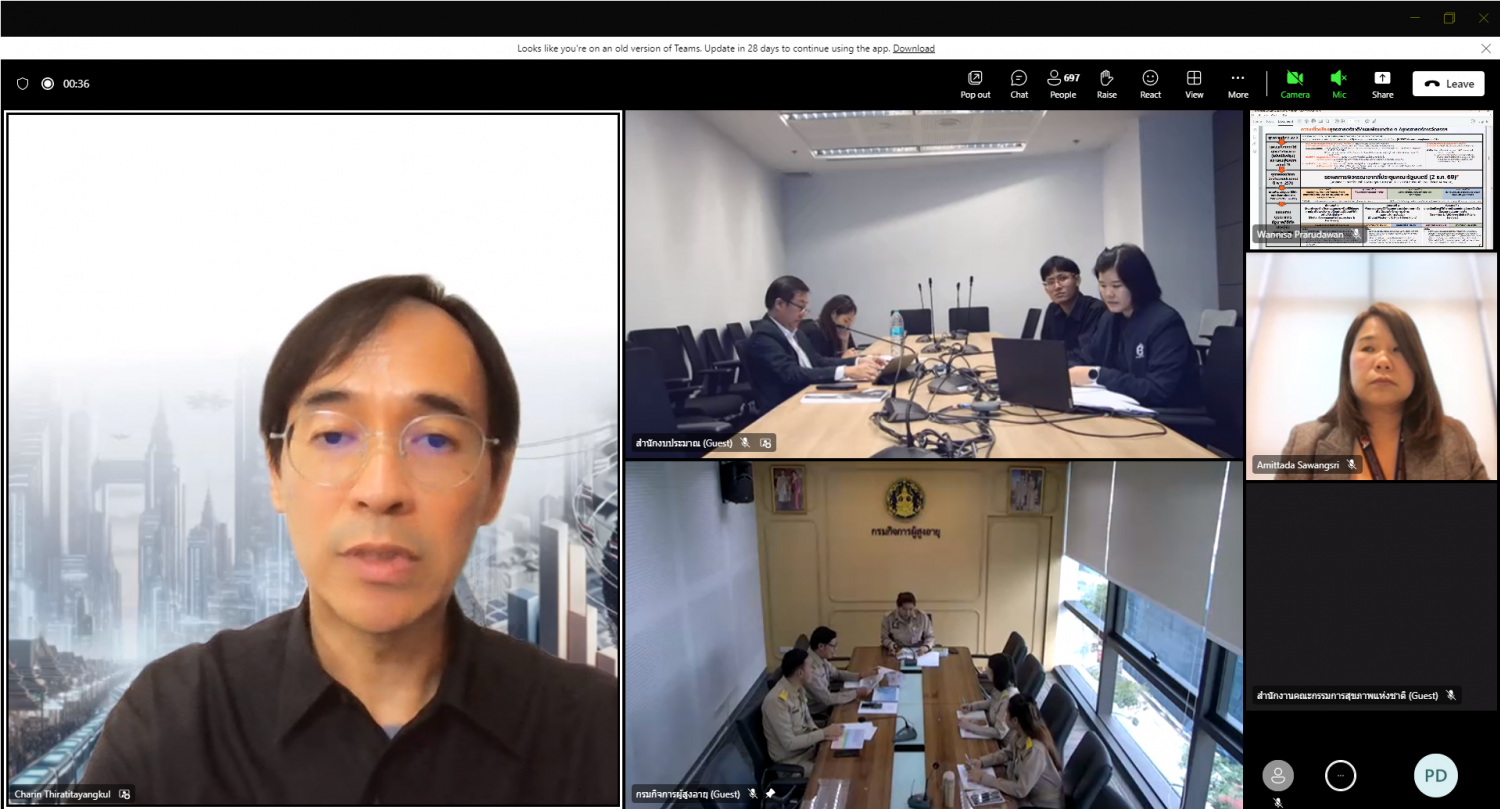 วันจันทร์ที่ 10 พฤศจิกายน พ.ศ. 2568 เวลา 13.00 น. นายโชคชัย วิเชียรชัยยะ อธิบดีกรมกิจการผู้สูงอายุ มอบหมายให้ นางวรรณภา สุขคง รองอธิบดีกรมกิจการผู้สูงอายุ พร้อมด้วย นายศักดิ์ดา จัทครู ผู้อำนวยการกลุ่มแผนงานและงบประมาณ เข้าร่วมรับฟังการชี้แจง (ร่าง) แผนบูรณาการรัฐบาลดิจิทัล ประจำปีงบประมาณ พ.ศ. 2570 โดยมี นางไอรดา เหลืองวิไล รักษาการแทนผู้อำนวยการสำนักงานพัฒนารัฐบาลดิจิทัล เป็นประธานการประชุมฯ อีกทั้ง กรมกิจการผู้สูงอายุยังได้เสนอโครงการเพื่อการสนับสนุนงบประมาณ ภายใต้แผนบูรณาการรัฐบาลดิจิทัล ประจำปีงบประมาณ พ.ศ. 2570 อีกด้วย ทั้งนี้ มีข้าราชการ เจ้าหน้าที่ที่เกี่ยวข้อง กองยุทธศาสตร์และแผนงาน เข้าร่วมประชุม ณ ห้องโป๊ยเซียน 706 มงกุฎทอง ชั้น 7 กรมกิจการผู้สูงอายุ ผ่านระบบออนไลน์ MS Teams