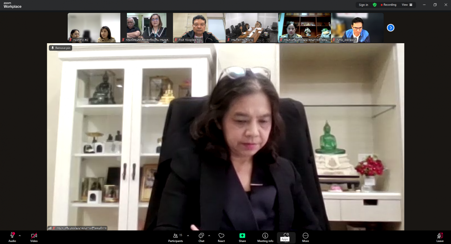 วันจันทร์ที่ 10 พฤศจิกายน พ.ศ. 2568 เวลา 13.30 น. นายโชคชัย วิเชียรชัยยะ อธิบดีกรมกิจการผู้สูงอายุ มอบหมายให้ นางวรรณภา สุขคง รองอธิบดีกรมกิจการผู้สูงอายุ พร้อมด้วย นางแพรวแพรวา สุขไพเราะ ผู้อำนวยการกลุ่มอำนวยการ ข้าราชการ และเจ้าหน้าที่ที่เกี่ยวข้อง เข้าร่วมประชุมคณะทำงานจัดสร้างร้านกาชาด กระทรวงการพัฒนาสังคมและความมั่นคงของมนุษย์ ประจำปี 2568 ผ่านระบบออนไลน์ Zoom Meeting ณ ห้องประชุมโป๊ยเซียน 707 มงกุฎทอง ชั้น 7 กรมกิจการผู้สูงอายุ เพื่อพิจารณาแนวทางการดำเนินงานร้านกาชาดกระทรวง พม. พิจารณาแบบก่อสร้าง ตกแต่งร้านงานกาชาด โดยมี นายทวีพงษ์ วิชัยดิษฐ ผู้ว่าการการเคหะแห่งชาติ เป็นประธานการประชุมฯ