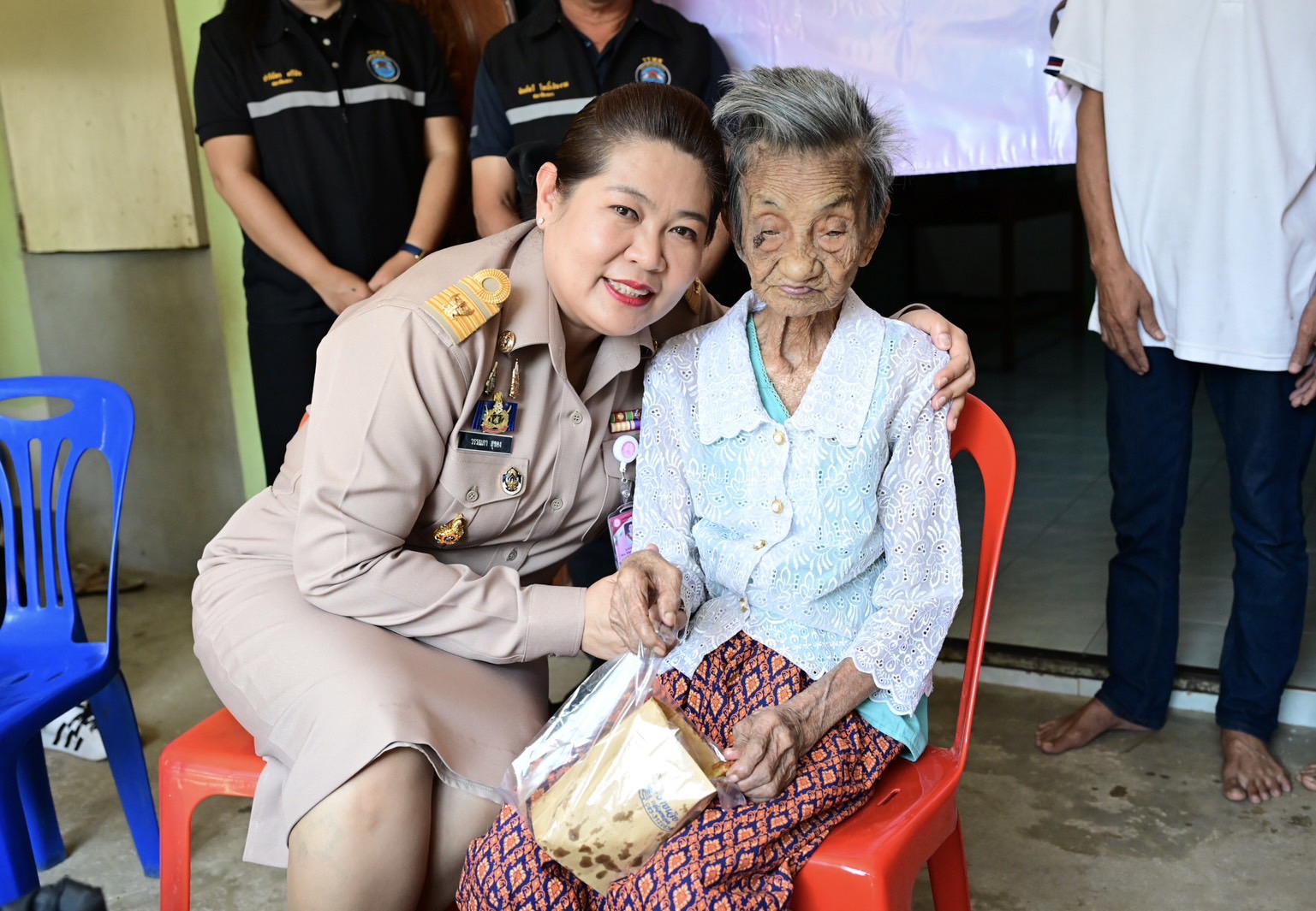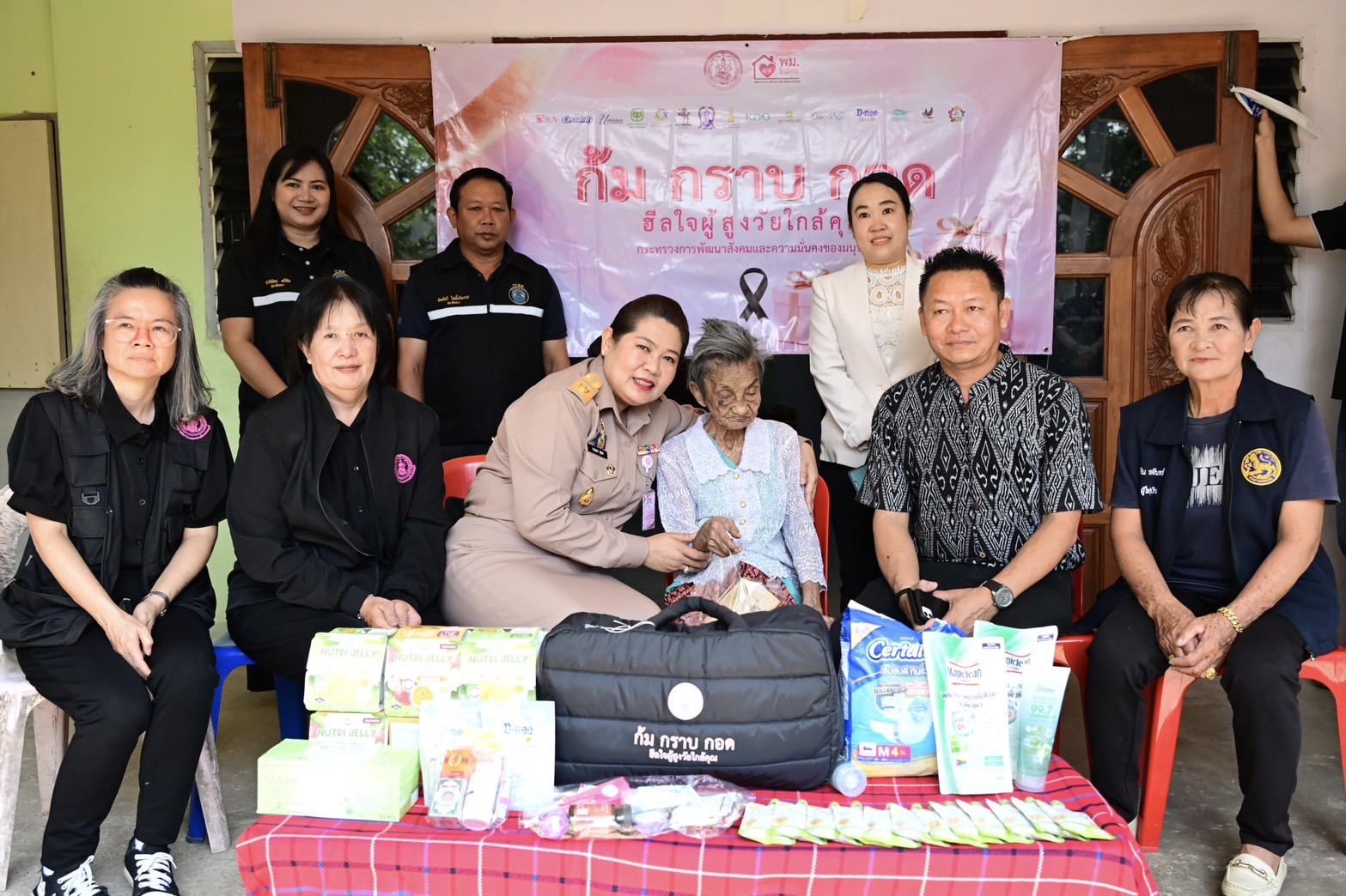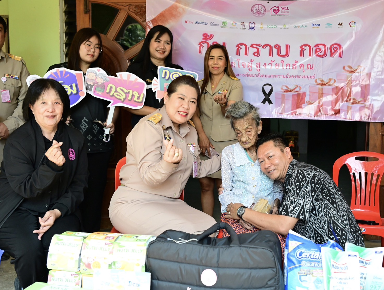 ผส. ลงพื้นที่จังหวัดกาญจนบุรี พบปะเยี่ยมให้กำลังใจผู้สูงอายุ 104 ปี ในกิจกรรม “ก้ม กราบ กอด ฮีลใจผู้สูงวัยใกล้คุณ”