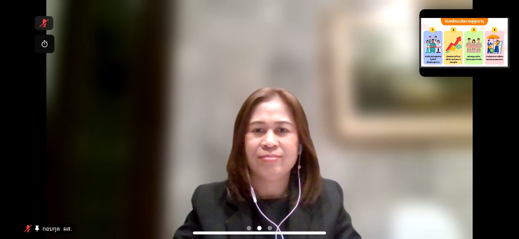 วันพฤหัสบดีที่ 22 มกราคม พ.ศ. 2569 เวลา 09.30 น. นายโชคชัย วิเชียรชัยยะ อธิบดีกรมกิจการผู้สูงอายุ มอบหมายให้ นางสาวกอบกุล กวั่งซ้วน ผู้เชี่ยวชาญเฉพาะด้านผู้สูงอายุ เข้าร่วมประชุมคณะกรรมการกำกับทิศทางการพัฒนาคุณภาพชีวิตผู้สูงอายุ ครั้งที่ 1/2569 ซึ่งจัดโดย สำนักงานกองทุนสนับสนุนการสร้างเสริมสุขภาพ (สสส.) เพื่อพิจารณารายงานความก้าวหน้าโครงการการขับเคลื่อนนโยบายเพื่อสังคมสูงวัยในอนาคต และพิจารณารายงานความก้าวหน้าโครงการสังเคราะห์บทเรียนเพื่อขับเคลื่อนการดำเนินงานพัฒนาคุณภาพชีวิตผู้สูงอายุในระดับพื้นที่ ผ่านระบบออนไลน์ Zoom meeting