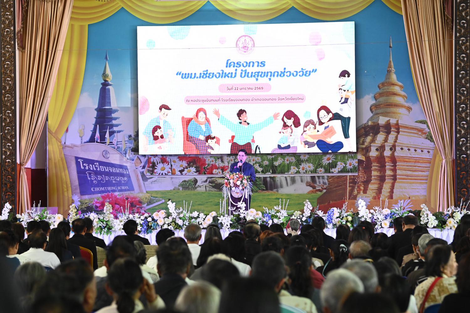 วันพฤหัสบดีที่ 22 มกราคม พ.ศ. 2569 เวลา 10.00 น. นายโชคชัย วิเชียรชัยยะ อธิบดีกรมกิจการผู้สูงอายุ มอบหมายให้ นางวาสนา ทองจันทร์ รองอธิบดีกรมกิจการผู้สูงอายุ ลงพื้นที่จังหวัดเชียงใหม่ ร่วมพิธีเปิดโครงการ “พม. เชียงใหม่ปันสุขทุกช่วงวัย” ตามนโยบาย “พม.ใกล้คุณ” และมอบแนวทางการขับเคลื่อนงานส่งเสริมการเข้าถึงสิทธิสวัสดิการสังคมของประชาชนทุกช่วงวัย เชื่อมโยงภาคีเครือข่ายท้องถิ่น โดยมี นายอัครา พรหมเผ่า รัฐมนตรีว่าการกระทรวงการพัฒนาสังคมและความมั่นคงของมนุษย์ (รมว.พม.) เป็นประธาน พร้อมด้วย นายนเรศ ธำรงทิพยคุณ รัฐมนตรีช่วยว่าการกระทรวงเกษตรและสหกรณ์ , นายกิตติ อินทรกุล รองปลัดกระทรวงการพัฒนาสังคมและความมั่นคงของมนุษย์ พร้อมคณะผู้บริหารกระทรวง พม. , นางสาวพลอยพรรณ พลอยทับทิม พัฒนาสังคมและความมั่นคงของมนุษย์จังหวัดเชียงใหม่ พร้อมทีม พม.ใกล้คุณจังหวัดเชียงใหม่ , นายณฐกร ภัทรวนนท์ นายอำเภอจอมทอง , ผู้บริหารและผู้นำท้องถิ่น และภาคีเครือข่ายท้องถิ่น เข้าร่วม ณ โรงเรียนจอมทอง อำเภอจอมทอง จังหวัดเชียงใหม่