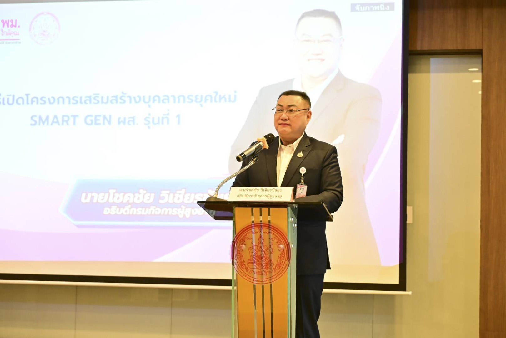 วันจันทร์ที่ 2 กุมภาพันธ์ พ.ศ. 2569 เวลา 09.15 น. นายโชคชัย วิเชียรชัยยะ อธิบดีกรมกิจการผู้สูงอายุ เป็นประธานในพิธีเปิดโครงการพัฒนาศักยภาพผู้นำองค์กรยุคใหม่ “SMART GEN ผส.” รุ่นที่ 1 ประจำปีงบประมาณ พ.ศ. 2569 พร้อมบรรยายพิเศษในหัวข้อ “วิสัยทัศน์ผู้นำ : อนาคตงานด้านผู้สูงอายุ” ณ โรงแรมเดอะ คาวาลิ คาซ่า รีสอร์ท จังหวัดพระนครศรีอยุธยา