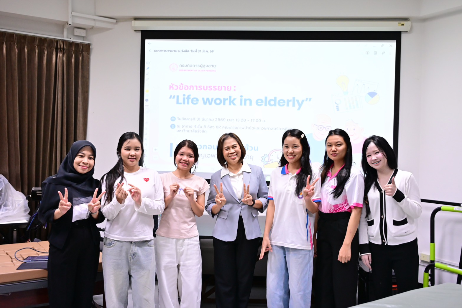 วันอังคารที่ 31 มีนาคม พ.ศ. 2569 เวลา 13.00 น. นายโชคชัย วิเชียรชัยยะ อธิบดีกรมกิจการผู้สูงอายุ มอบหมายให้ นางสาวกอบกุล กวั่งซ้วน ผู้เชี่ยวชาญเฉพาะด้านผู้สูงอายุ เป็นอาจารย์พิเศษบรรยายหัวข้อ “Life Work in Elderly” แก่นักศึกษาสาขาวิชาชรัณสุขศาสตร์ ชั้นปีที่ 3 คณะกายภาพบำบัดและเวชศาสตร์การกีฬา ในรายวิชา GGY 354 การส่งเสริมสุขภาพในผู้สูงอายุพฤฒพลัง (Health Promotion in Active Aging) โดยถ่ายทอดความรู้เกี่ยวกับการวางแผนชีวิตและการทำงานของผู้สูงอายุ การสร้างคุณค่าในตนเองหลังวัยเกษียณ รวมถึงแนวทางการส่งเสริมให้ผู้สูงอายุสามารถดำรงชีวิตอย่างมีคุณภาพ มีศักดิ์ศรี และมีส่วนร่วมในสังคมได้อย่างยั่งยืน ณ อาคาร 4 ชั้น 5 ห้อง KR คณะกายภาพบำบัดและเวชศาสตร์การกีฬา มหาวิทยาลัยรังสิต