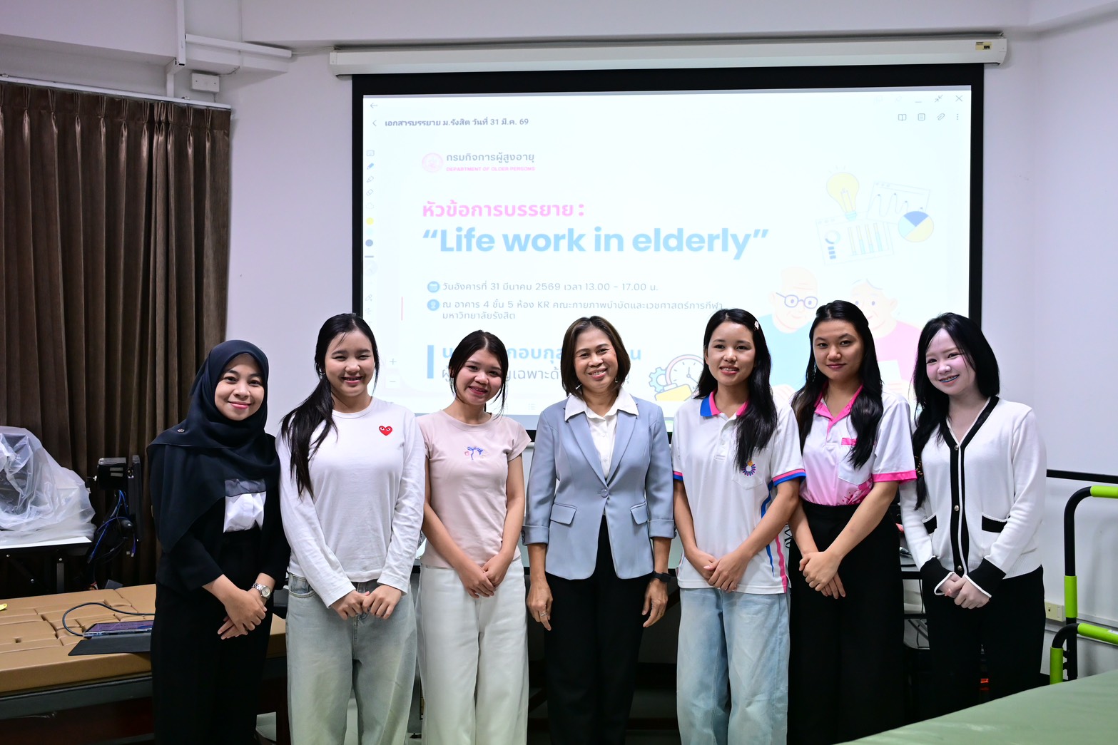 ผส. ถ่ายทอดองค์ความรู้ “Life Work in Elderly” แก่นักศึกษาชรัณสุขศาสตร์ คณะกายภาพบำบัดและเวชศาสตร์การกีฬา มหาวิทยาลัยรังสิต