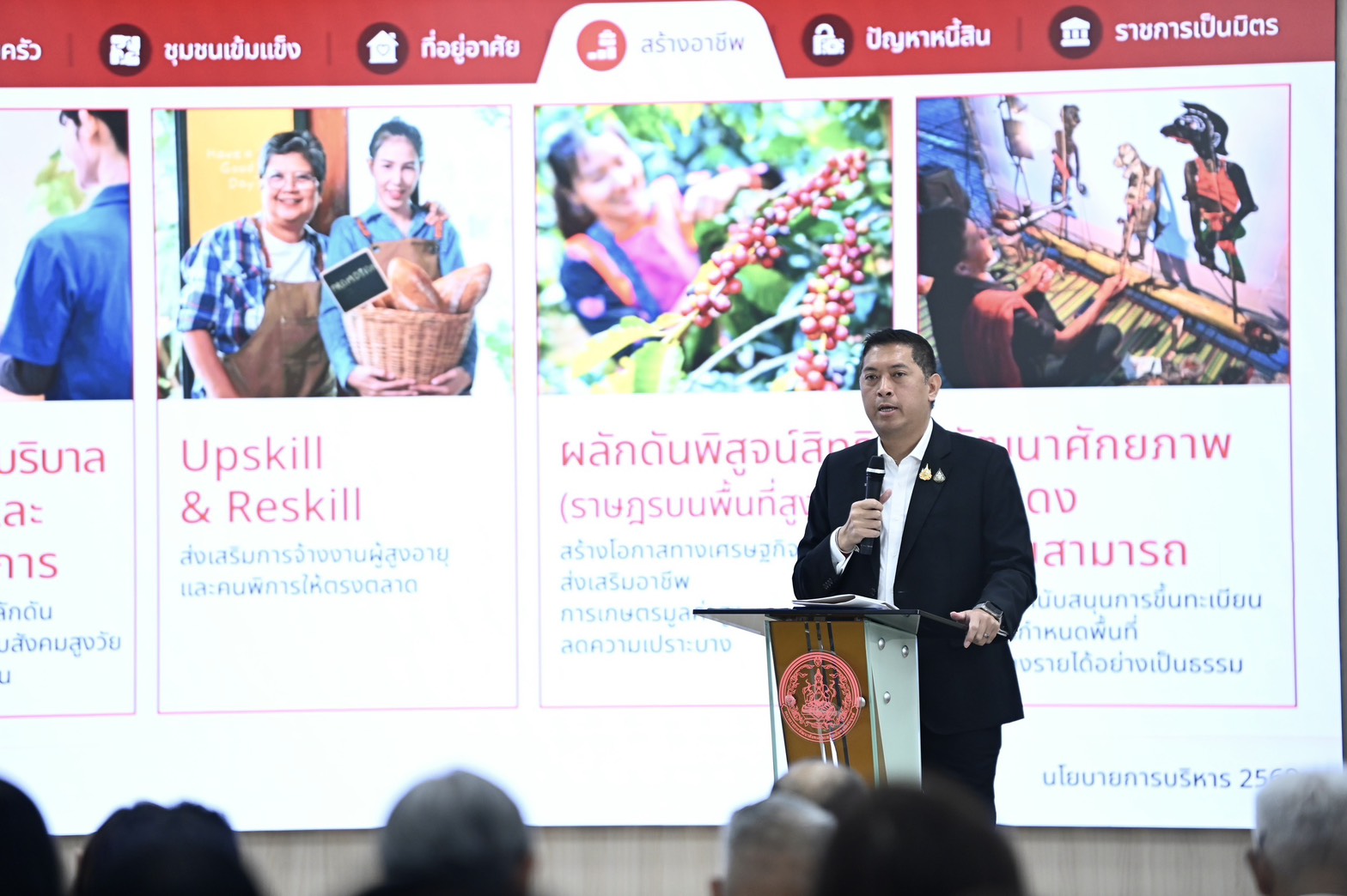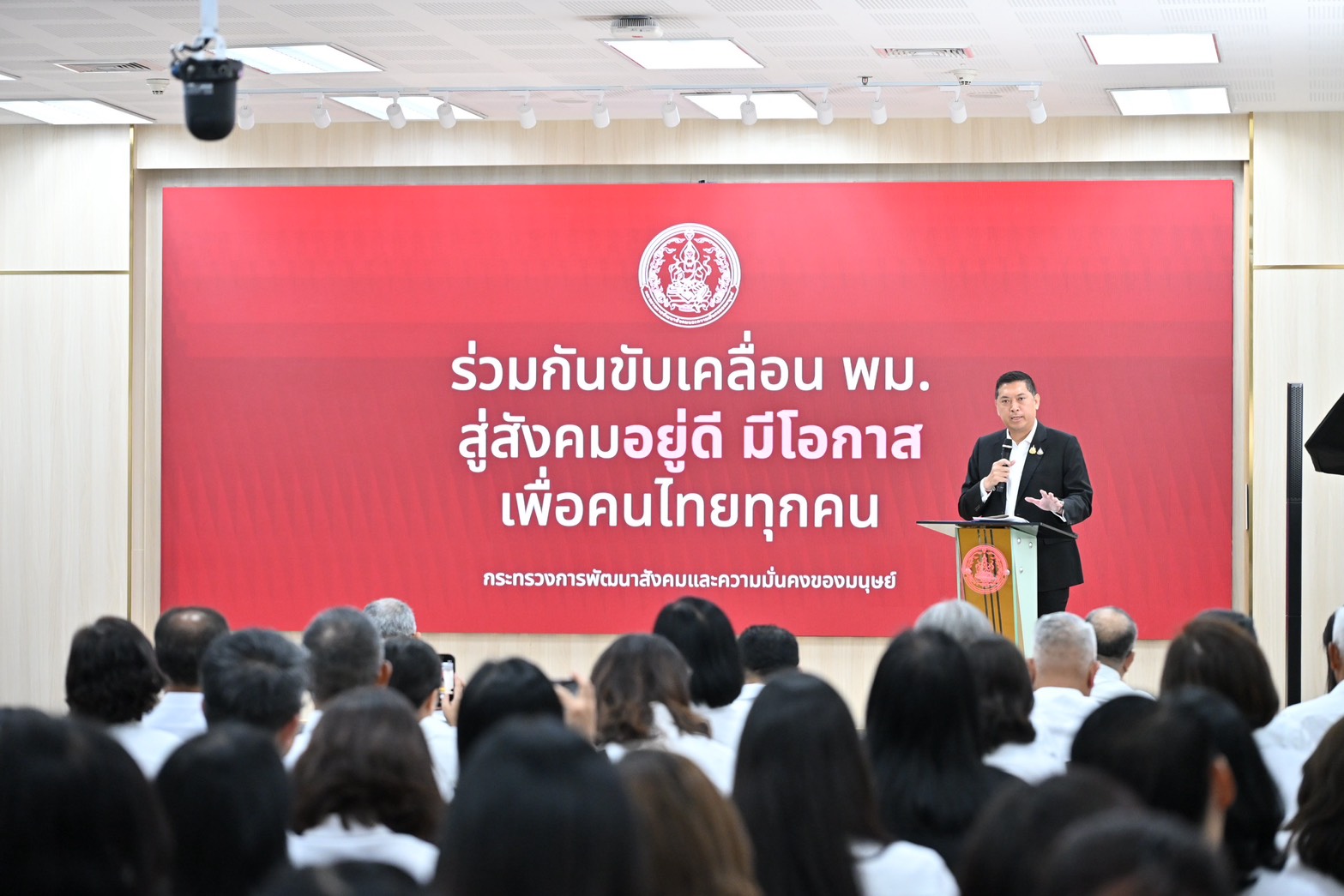 วันพุธที่ 22 เมษายน พ.ศ. 2569 เวลา 09.00 น. นายนิกร โสมกลาง รัฐมนตรีว่าการกระทรวงการพัฒนาสังคมและความมั่นคงของมนุษย์ (รมว.พม.) มอบนโยบายรัฐมนตรีว่าการกระทรวงการพัฒนาสังคมและความมั่นคงของมนุษย์ในการขับเคลื่อนภารกิจกระทรวงการพัฒนาสังคมและความมั่นคงของมนุษย์ (พม.) โดยมี นายกันตพงศ์ รังษีสว่าง ปลัดกระทรวงการพัฒนาสังคมและความมั่นคงของมนุษย์ (ปลัด พม.) นายโชคชัย วิเชียรชัยยะ อธิบดีกรมกิจการผู้สูงอายุ นางวรรณภา สุขคง และนางวาสนา ทองจันทร์ รองอธิบดีกรมกิจการผู้สูงอายุ พร้อมด้วย คณะผู้บริหารกระทรวง พม. หัวหน้าหน่วยงานและเจ้าหน้าที่กระทรวง พม. ทั้งในส่วนกลางและส่วนภูมิภาคทั่วประเทศ ร่วมรับฟังนโยบาย ณ ห้องประชุมประชาบดี ชั้น 19 กระทรวง พม. และผ่านระบบออนไลน์ ณ ห้องประชุมโป๊ยเซียน 705 ทรัพย์เจริญสุข กรมกิจการผู้สูงอายุ