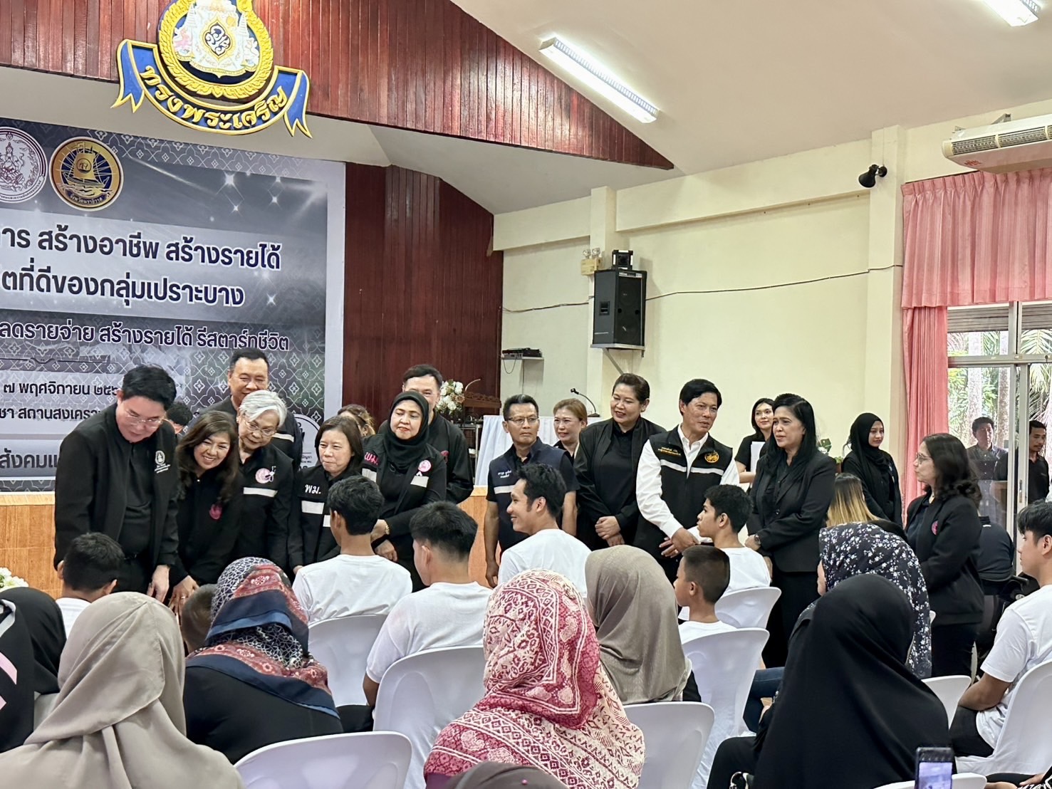 วันศุกร์ที่ 7 พฤศจิกายน พ.ศ 2568 นายโชคชัย วิเชียรชัยยะ อธิบดีกรมกิจการผู้สูงอายุ มอบหมายให้ นางวรรณภา สุขคง รองอธิบดีกรมกิจการผู้สูงอายุ ร่วมลงพื้นที่จังหวัดนราธิวาส นำโดย นายอัครา พรหมเผ่า รัฐมนตรีว่าการกระทรวงการพัฒนาสังคมและความมั่นคงของมนุษย์ พร้อมด้วย นางสาวสุนีย์ ศรีสง่าตระกูลเลิศ รองปลัดกระทรวง พม. และคณะผู้บริหารกระทรวง พม. หน่วยงานทีมพม. ใกล้คุณ จังหวัดนราธิวาส ลงพื้นที่พบปะประชาชน และมอบเครื่องอุปโภคบริโภคแก่กลุ่มเปราะบาง จำนวน 50 ราย  พร้อมเยี่ยมชมบูธนิทรรศการภายใต้แนวคิด “ลดรายจ่าย สร้างรายได้ รีสตาร์ทชีวิต” โดยมี รองผู้ว่าราชการจังหวัดนราธิวาส กล่าวต้อนรับ นางสาวสาลินี วงศ์ทอง พัฒนาสังคมและความมั่นคงของมนุษย์จังหวัดนราธิวาส กล่าวรายงาน ณ สถานสงเคราะห์เด็กชายนราธิวาส จังหวัดนราธิวาส
