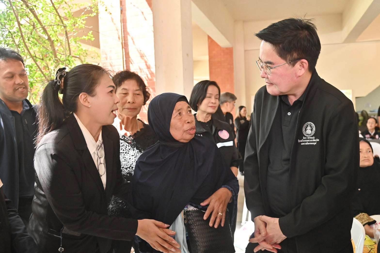 วันเสาร์ที่ 8 พฤศจิกายน 2568 เวลา 12.30 น. นายโชคชัย วิเชียรชัยยะ อธิบดีกรมกิจการผู้สูงอายุ ร่วมลงพื้นที่ จว.ชายแดนใต้ โดยมี นายอัครา พรหมเผ่า รัฐมนตรีว่าการกระทรวงการพัฒนาสังคมและความมั่นคงของมนุษย์ ร่วมกับ ร้อยเอก ธรรมนัส พรหมเผ่า รองนายกรัฐมนตรี และรัฐมนตรีว่าการกระทรวงเกษตรและสหกรณ์ ศ.ดร.นฤมล ภิญโญสินวัฒน์ รัฐมนตรีว่าการกระทรวงศึกษาธิการ และนายอรรถกร ศิริลัทธยากร รัฐมนตรีว่าการกระทรวงการท่องเที่ยวและกีฬา ลงพื้นที่พบปะให้กำลังใจ พร้อมรับฟังปัญหาความเดือดร้อนและความต้องการของพี่น้องประชาชนและกลุ่มเปราะบางในพื้นที่ เพื่อบูรณาการความร่วมมือระหว่าง 4 กระทรวง สำหรับการพัฒนาคุณภาพชีวิตคนทุกช่วงวัยในทุกมิติ อีกทั้งมอบความช่วยเหลือเป็นถุงยังชีพเครื่องอุปโภคบริโภคที่จำเป็นเพื่อบรรเทาความเดือดร้อน โดยมีนายกันตพงศ์ รังษีสว่าง ปลัดกระทรวงการพัฒนาสังคมและความมั่นคงของมนุษย์ คณะผู้บริหารกระทรวง พม. หน่วยงานทีม พม.ใกล้คุณ และหน่วยงานที่เกี่ยวข้องในพื้นที่เข้าร่วม ณ มหาวิทยาลัยสงขลานครินทร์ วิทยาเขตปัตตานี อำเภอเมือง จังหวัดปัตตานี
