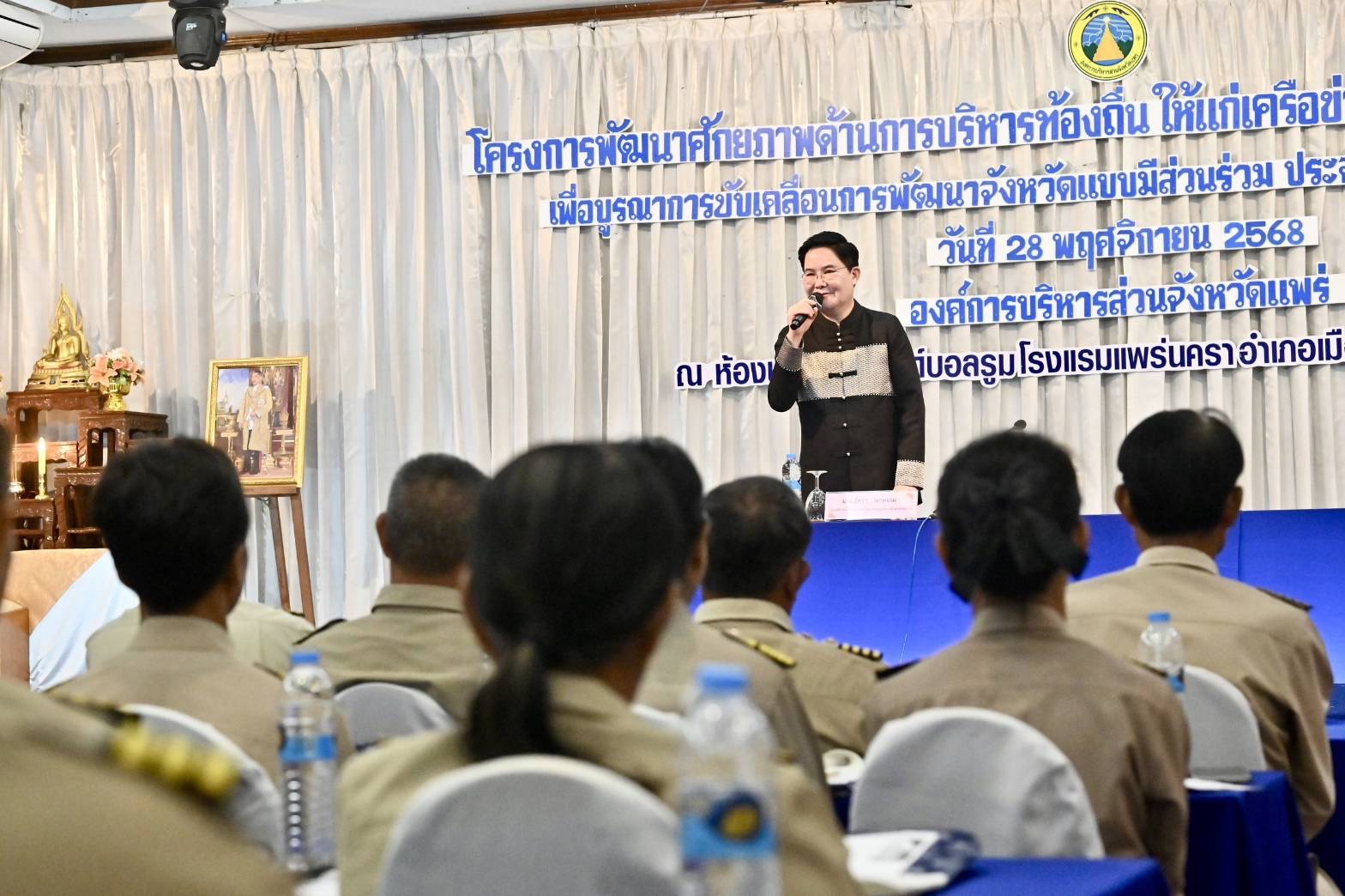วันศุกร์ที่ 28 พฤศจิกายน 2568 เวลา 10.00 น. นายโชคชัย วิเชียรชัยยะ อธิบดีกรมกิจการผู้สูงอายุ มอบหมายให้ นางวรรณภา สุขคง รองอธิบดีกรมกิจการผู้สูงอายุ เข้าร่วมพิธีเปิดโครงการพัฒนาศักยภาพด้านการบริหารท้องถิ่น ให้แก่เครือข่ายผู้นำชุมชน และภาคประชาชนเพื่อบูรณาการขับเคลื่อนการพัฒนาจังหวัดแบบมีส่วนร่วม ประจำปีงบประมาณ พ.ศ. 2569 โดยมี นายอัครา พรหมเผ่า รัฐมนตรีว่าการกระทรวงการพัฒนาสังคมและความมั่นคงของมนุษย์ (รมว.พม.) เป็นประธานในพิธี พร้อมด้วย นายกันตพงศ์ รังษีสว่าง ปลัดกระทรวงการพัฒนาสังคมและความมั่นคงของมนุษย์ (ปลัด พม.) คณะผู้บริหารกระทรวง พม. คณะผู้บริหารท้องถิ่น และผู้แทนหน่วยงานที่เกี่ยวข้อง เข้าร่วม ณ โรงแรมแพร่นครา จังหวัดแพร่