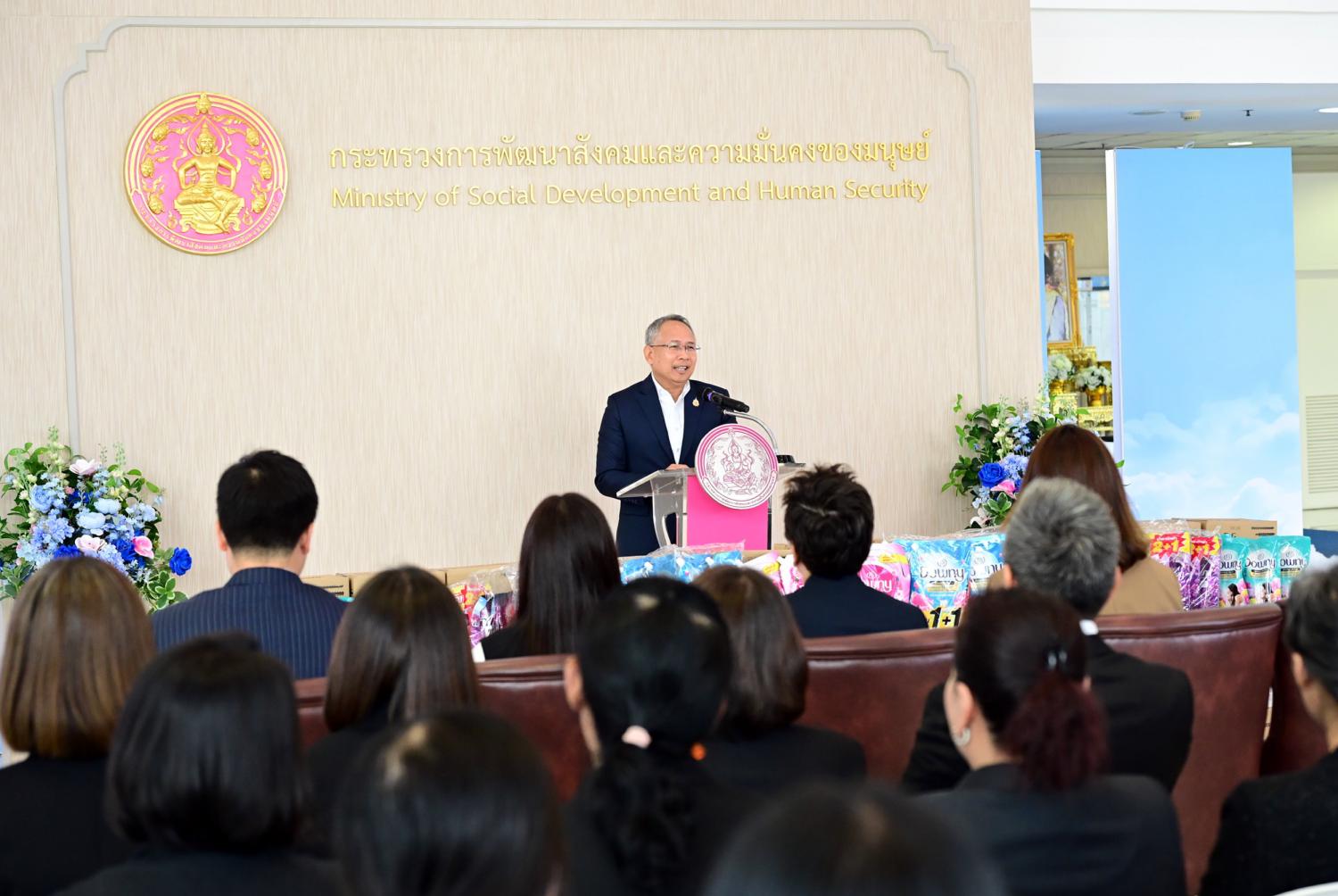 วันศุกร์ที่ 6 กุมภาพันธ์ พ.ศ. 2569 เวลา 14.30 น. นายโชคชัย วิเชียรชัยยะ อธิบดีกรมกิจการผู้สูงอายุ มอบหมายให้ นางวรรณภา สุขคง รองอธิบดีกรมกิจการผู้สูงอายุ ร่วมพิธีรับมอบสิ่งของบริจาคจาก บริษัท พรอคเตอร์ แอนด์ แกมเบิล เทรดดิ้ง (ประเทศไทยจำกัด) สนับสนุนผลิตภัณฑ์มูลค่ารวม 800,000 บาท ให้แก่ กรมกิจการสตรีและสถาบันครอบครัว เพื่อนำไปส่งต่อให้กลุ่มเปราะบางที่ประสบปัญหาทางสังคม โดยมี นายกันตพงศ์ รังษีสว่าง ปลัดกระทรวงการพัฒนาสังคมและความมั่นคงของมนุษย์ เป็นประธานในพิธีฯ นางสาวสิรินพร วัฒนะภราดร รองประธานกรรมการฝ่ายขายและการสื่อสารองค์กร กล่าวรายงาน พร้อมด้วย คณะผู้บริหารกระทรวง พม. ข้าราชการและเจ้าหน้าที่ในสังกัดกรมกิจการผู้สูงอายุ เข้าร่วม ณ บริเวณห้องโถง ชั้น 1 กระทรวงการพัฒนาสังคมและความมั่นคงของมนุษย์
