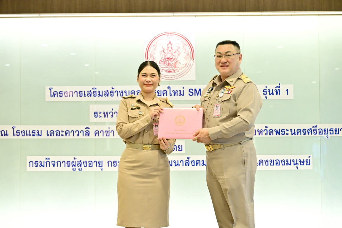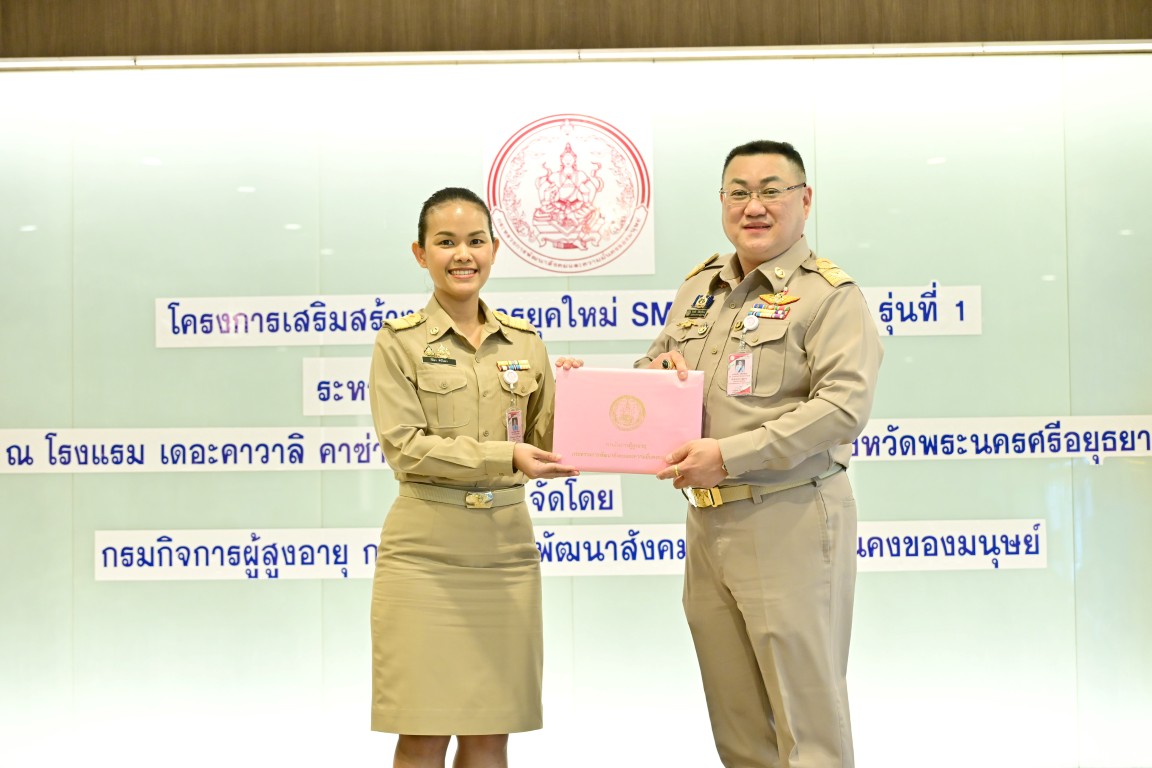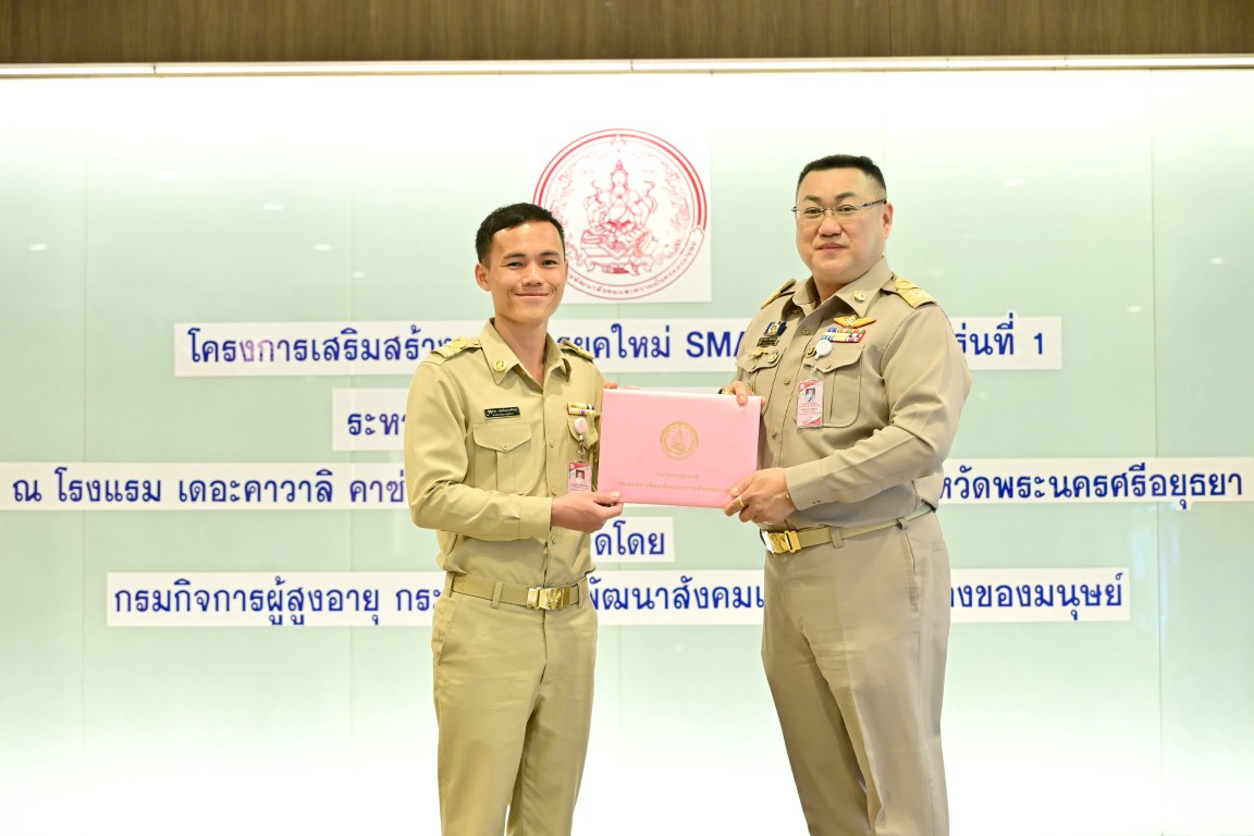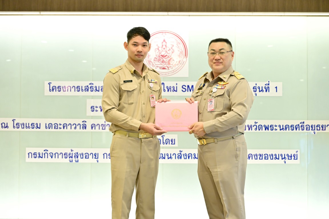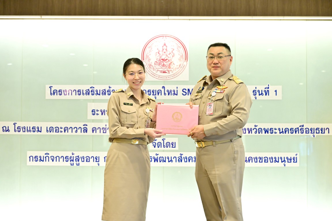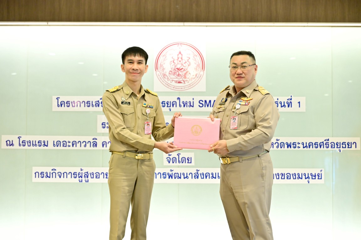 วันศุกร์ที่ 6 กุมภาพันธ์ พ.ศ. 2569 เวลา 15.00 น. นายโชคชัย วิเชียรชัยยะ อธิบดีกรมกิจการผู้สูงอายุ เป็นประธานในพิธีปิดโครงการเสริมสร้างบุคลากรยุคใหม่ SMART GEN ผส. รุ่นที่ 1 พร้อมมอบแนวทางและสร้างเเรงบันดาลใจในการปฏิบัติงานเเละมอบประกาศนียบัตรให้เเก่ผู้เข้าร่วมโครงการฯ โดยมี นางวาสนา ทองจันทร์ รองอธิบดีกรมกิจการผู้สูงอายุ นางพัชรมณฑ์ ปิติปัญญากุล ผู้อำนวยการกองส่งเสริมสวัสดิการและคุ้มครองสิทธิผู้สูงอายุ คณะผู้บริหารกรมกิจการผู้สูงอายุ คณะวิทยากร และเจ้าหน้าที่ที่เกี่ยวข้อง ร่วมเป็นเกียรติ ณ โรงแรมเดอะ คาวาลิ คาซ่า รีสอร์ท จังหวัดพระนครศรีอยุธยา
