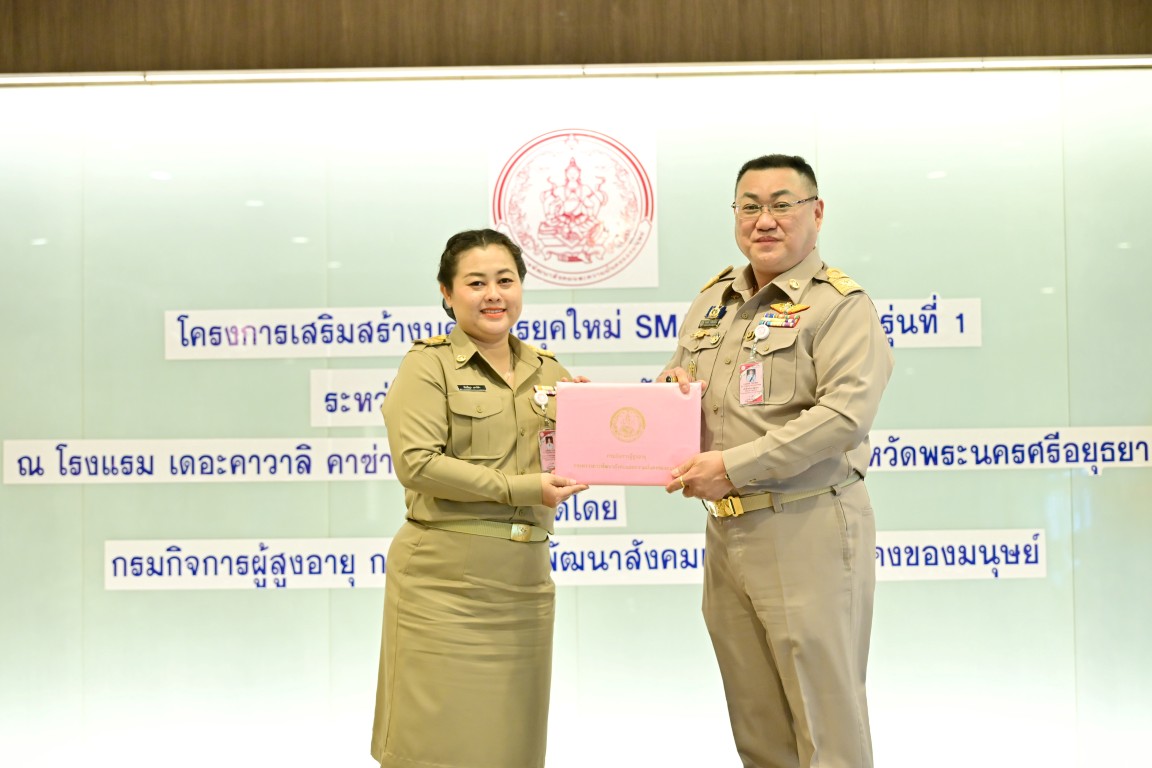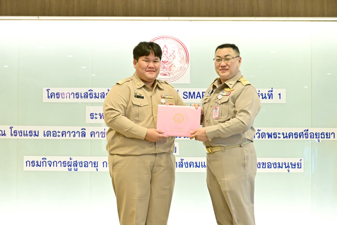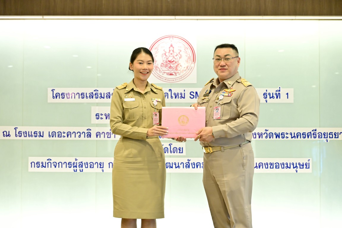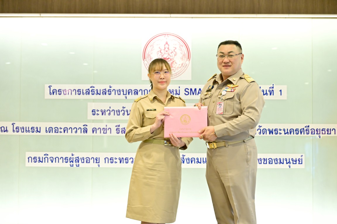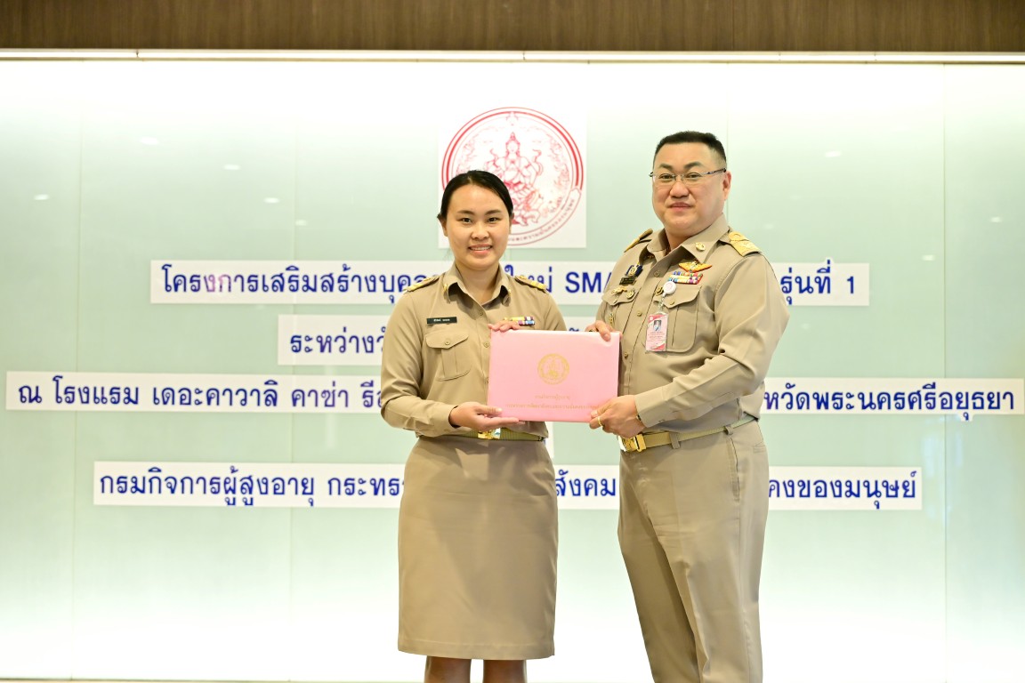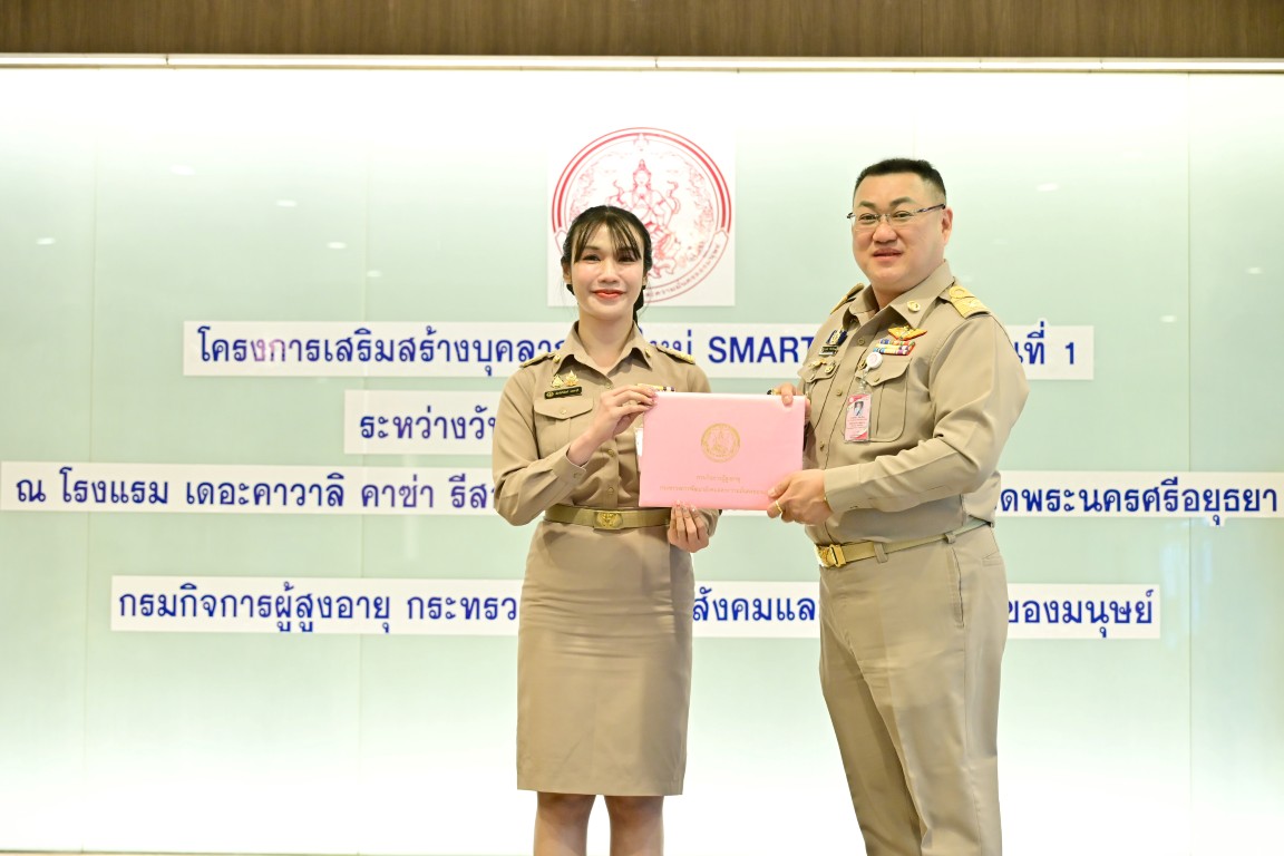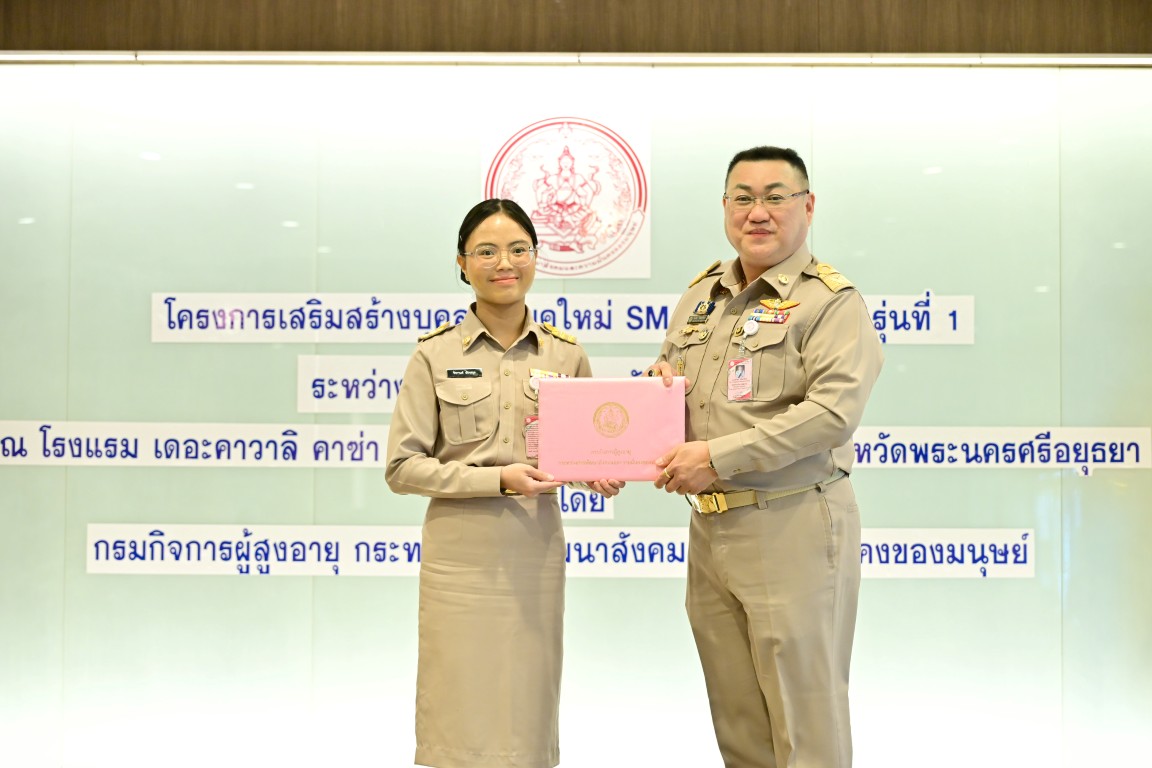 วันศุกร์ที่ 6 กุมภาพันธ์ พ.ศ. 2569 เวลา 15.00 น. นายโชคชัย วิเชียรชัยยะ อธิบดีกรมกิจการผู้สูงอายุ เป็นประธานในพิธีปิดโครงการเสริมสร้างบุคลากรยุคใหม่ SMART GEN ผส. รุ่นที่ 1 พร้อมมอบแนวทางและสร้างเเรงบันดาลใจในการปฏิบัติงานเเละมอบประกาศนียบัตรให้เเก่ผู้เข้าร่วมโครงการฯ โดยมี นางวาสนา ทองจันทร์ รองอธิบดีกรมกิจการผู้สูงอายุ นางพัชรมณฑ์ ปิติปัญญากุล ผู้อำนวยการกองส่งเสริมสวัสดิการและคุ้มครองสิทธิผู้สูงอายุ คณะผู้บริหารกรมกิจการผู้สูงอายุ คณะวิทยากร และเจ้าหน้าที่ที่เกี่ยวข้อง ร่วมเป็นเกียรติ ณ โรงแรมเดอะ คาวาลิ คาซ่า รีสอร์ท จังหวัดพระนครศรีอยุธยา