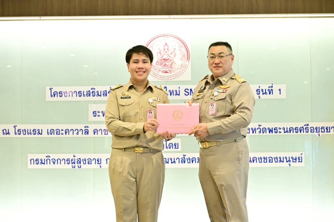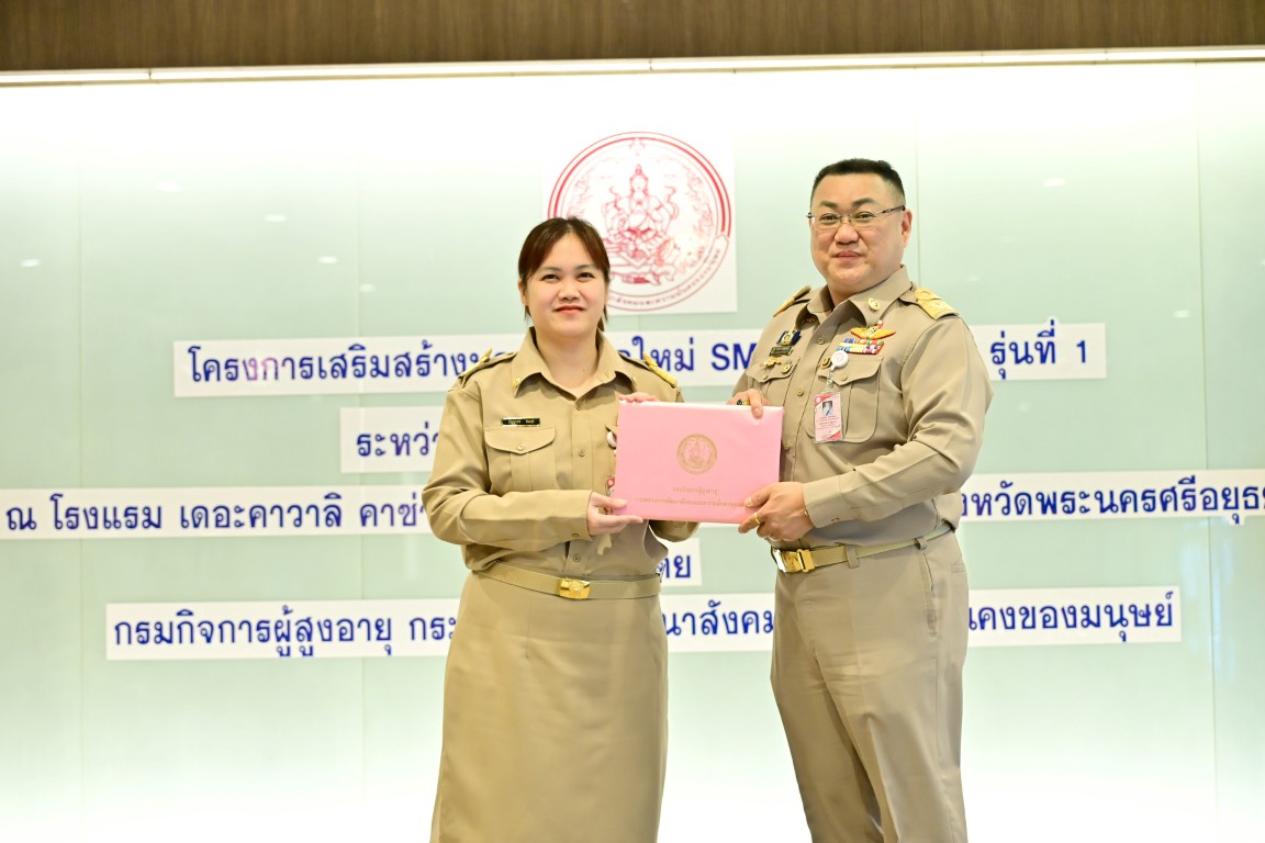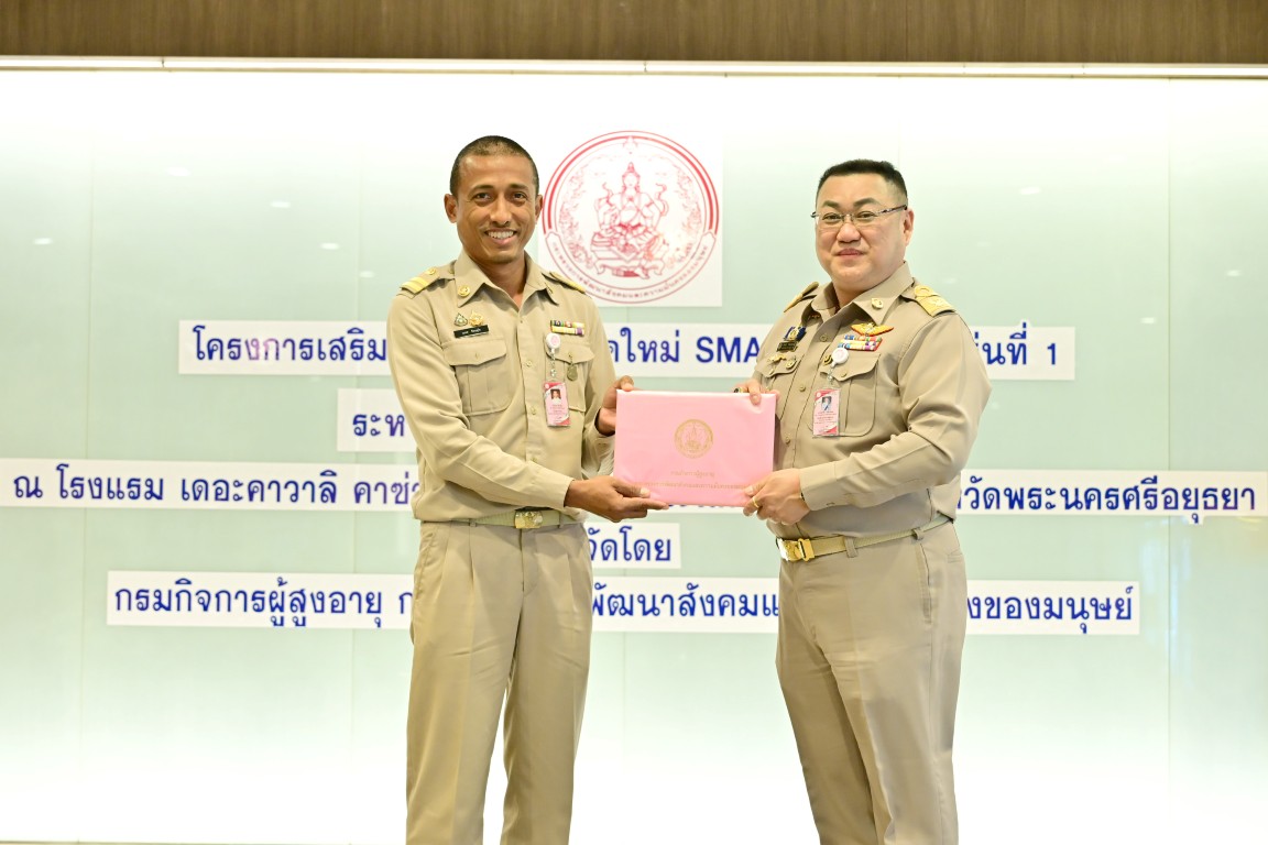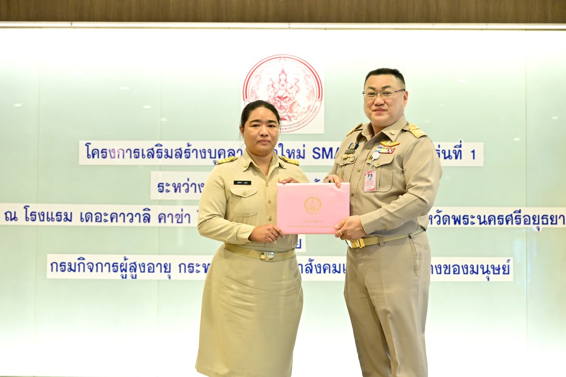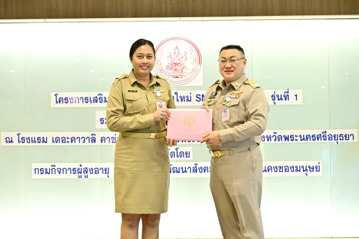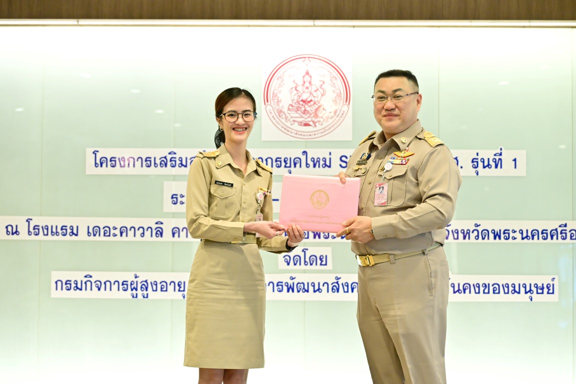 วันศุกร์ที่ 6 กุมภาพันธ์ พ.ศ. 2569 เวลา 15.00 น. นายโชคชัย วิเชียรชัยยะ อธิบดีกรมกิจการผู้สูงอายุ เป็นประธานในพิธีปิดโครงการเสริมสร้างบุคลากรยุคใหม่ SMART GEN ผส. รุ่นที่ 1 พร้อมมอบแนวทางและสร้างเเรงบันดาลใจในการปฏิบัติงานเเละมอบประกาศนียบัตรให้เเก่ผู้เข้าร่วมโครงการฯ โดยมี นางวาสนา ทองจันทร์ รองอธิบดีกรมกิจการผู้สูงอายุ นางพัชรมณฑ์ ปิติปัญญากุล ผู้อำนวยการกองส่งเสริมสวัสดิการและคุ้มครองสิทธิผู้สูงอายุ คณะผู้บริหารกรมกิจการผู้สูงอายุ คณะวิทยากร และเจ้าหน้าที่ที่เกี่ยวข้อง ร่วมเป็นเกียรติ ณ โรงแรมเดอะ คาวาลิ คาซ่า รีสอร์ท จังหวัดพระนครศรีอยุธยา
