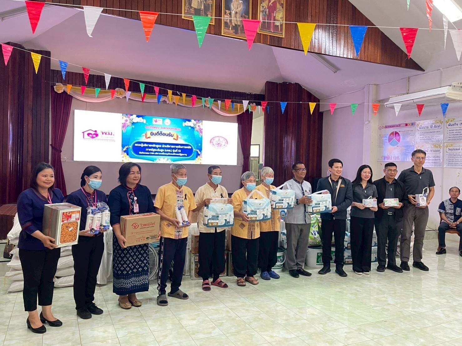 จากนั้น คณะผู้เข้าอบรมฯ ได้เยี่ยมให้กำลังใจผู้สูงอายุที่อยู่ในการดูแลของศพส. นครพนม พร้อมมอบสิ่งของจำเป็นแก่ผู้สูงอายุ เพื่อสร้างขวัญและกำลังใจในการดำรงชีวิตอย่างมีคุณภาพ
