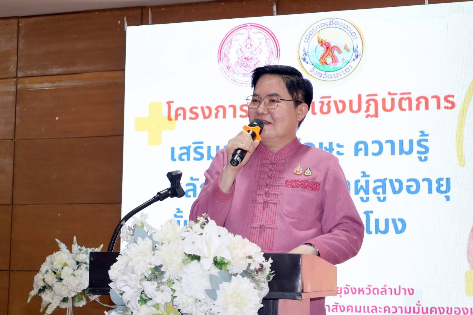 โดยมี นายสัจจวิทย์ ลีลาวณิชย์ นายกเทศมนตรีเมืองพะเยา นางวาสนา ทองจันทร์ รองอธิบดีกรมกิจการผู้สูงอายุ นางวัลลภา ธนู ประสิทธิ์วัชรากร พัฒนาสังคมและความมั่นคงของมนุษย์จังหวัดพะเยา นางพัชรินทร์ เสนาะสันต์ ผู้อำนวยการศูนย์พัฒนาการจัดสวัสดิการสังคมผู้สูงอายุจังหวัดลำปาง คณะผู้บริหารเทศบาลเมืองพะเยา หัวหน้าหน่วยงาน ทีม พม. ใกล้คุณจังหวัดพะเยา และภาคีเครือข่ายในพื้นที่ เข้าร่วม ณ อาคารสโมสรพนักงานเทศบาลเมืองพะเยา อำเภอเมืองพะเยา จังหวัดพะเยา