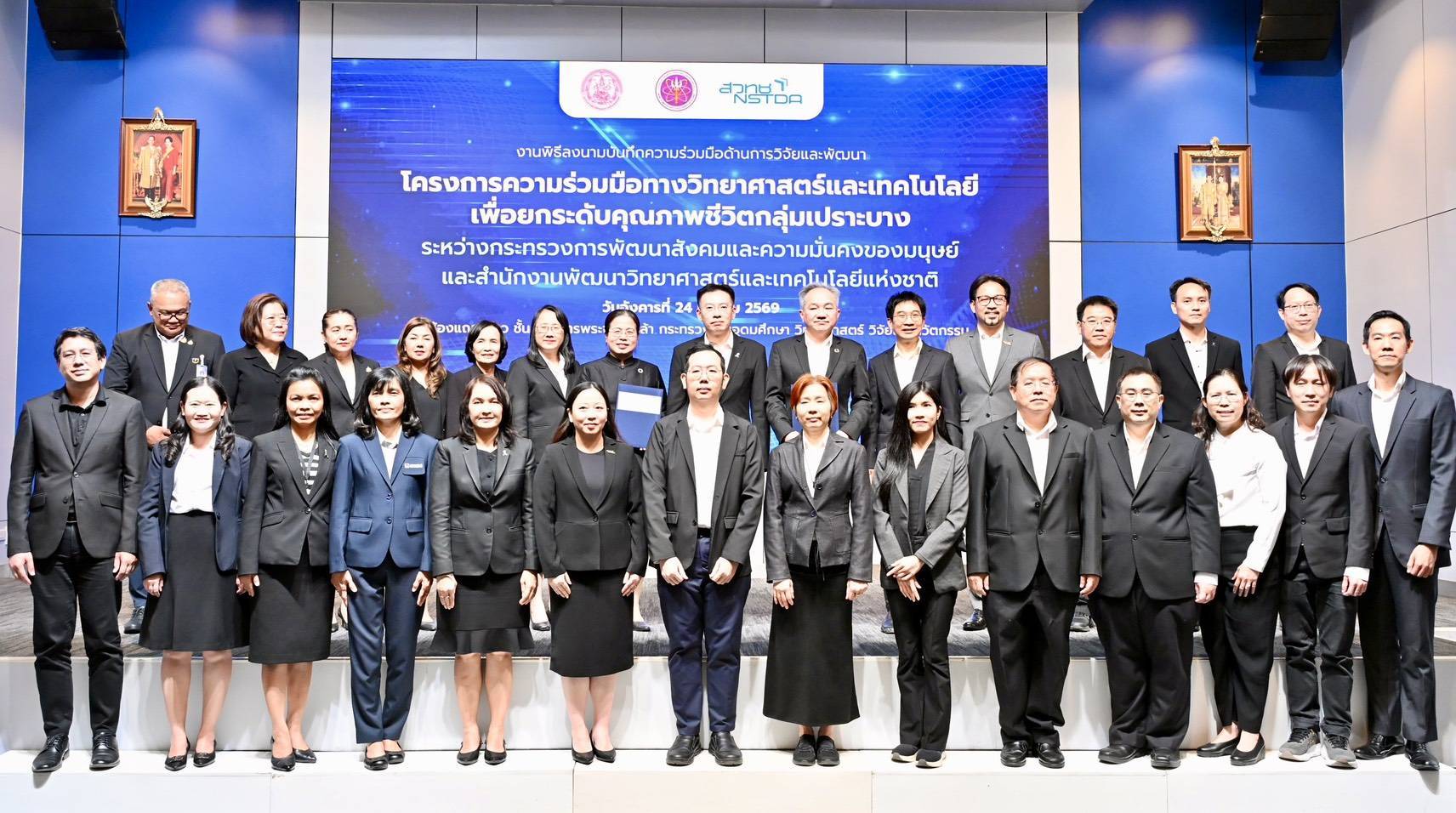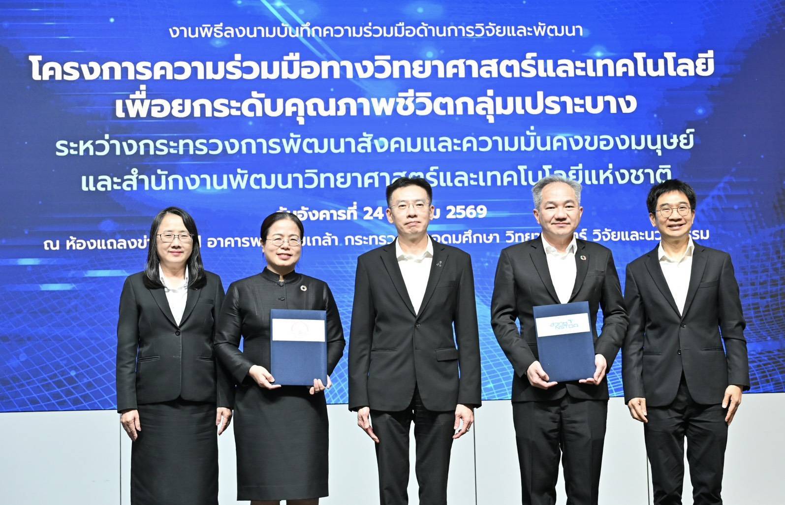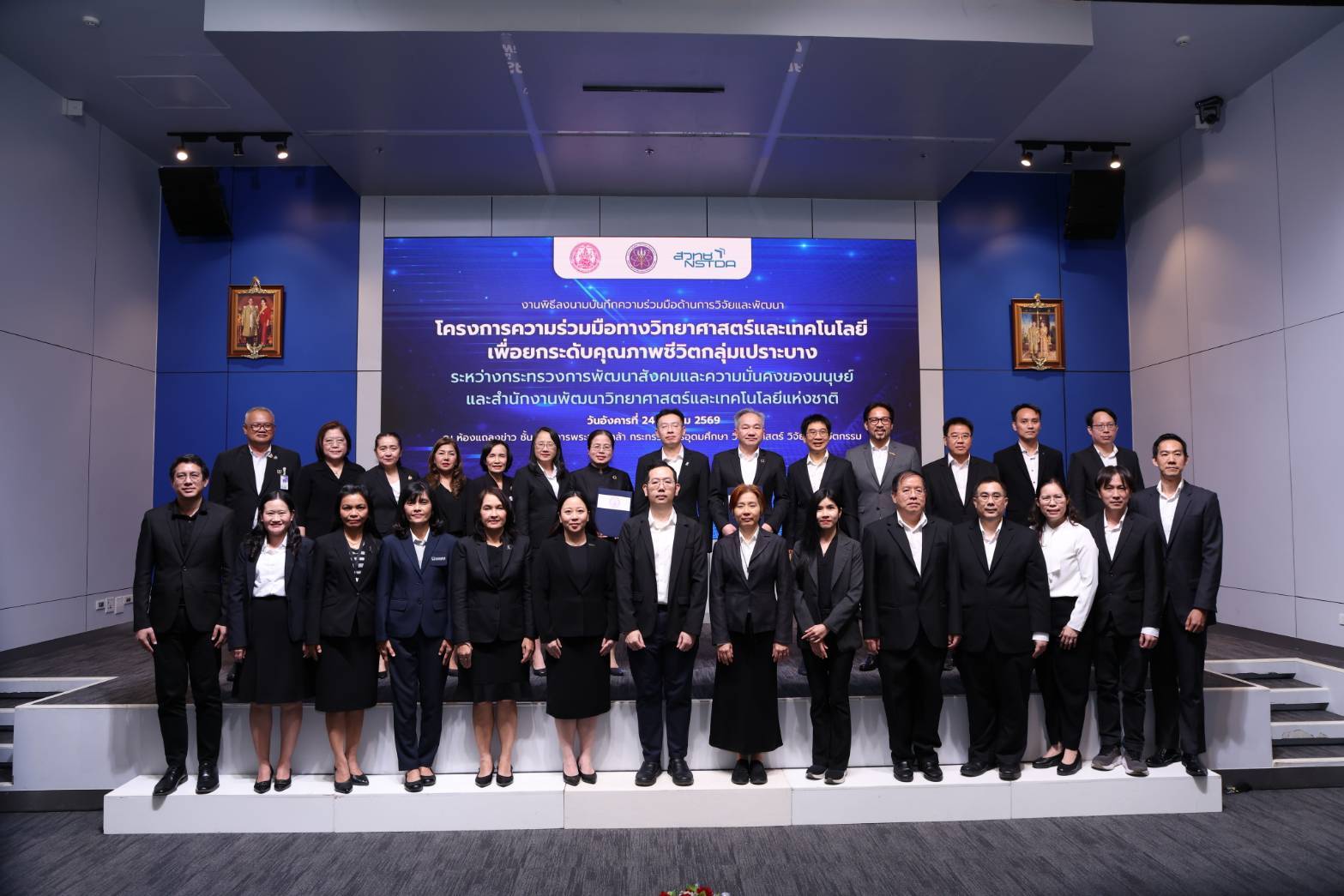 วันอังคารที่ 24 มีนาคม พ.ศ. 2569 เวลา 13.00 น. นายโชคชัย วิเชียรชัยยะ อธิบดีกรมกิจการผู้สูงอายุ มอบหมายให้ นางวาสนา ทองจันทร์ รองอธิบดีกรมกิจการผู้สูงอายุ เข้าร่วมพิธีลงนามบันทึกข้อตกลงความร่วมมือด้านการวิจัยและพัฒนา ภายใต้โครงการความร่วมมือทางวิทยาศาสตร์และเทคโนโลยี เพื่อยกระดับคุณภาพชีวิตกลุ่มเปราะบาง ระหว่างกระทรวงการพัฒนาสังคมและความมั่นคงของมนุษย์ และ สำนักงานพัฒนาวิทยาศาสตร์และเทคโนโลยีแห่งชาติ โดยมี ศาสตราจารย์ ดร.ศุภชัย ปทุมนากุล ปลัดกระทรวงการอุดมศึกษา วิทยาศาสตร์ วิจัยและนวัตกรรม กล่าวต้อนรับ พร้อมด้วย นางเตือนใจ คงสมบัติ รองปลัดกระทรวงการพัฒนาสังคมและความมั่นคงของมนุษย์ และ ศาสตราจารย์ ชูกิจ ลิมปิจำนงค์ ผู้อำนวยการสำนักงานพัฒนาวิทยาศาสตร์และเทคโนโลยีแห่งชาติ ร่วมแสดงเจตจำนงความร่วมมือ โดยมีคณะผู้บริหารกระทรวง พม. คณะผู้บริหาร สวทช. ข้าราชการ และเจ้าหน้าที่ที่เกี่ยวข้องเข้าร่วม ณ ห้องประชุมแถลงข่าว ชั้น 1 อาคารพระจอมเกล้า กระทรวงการอุดมศึกษา วิทยาศาสตร์ วิจัยและนวัตกรรม