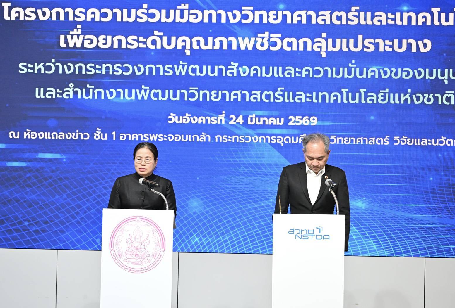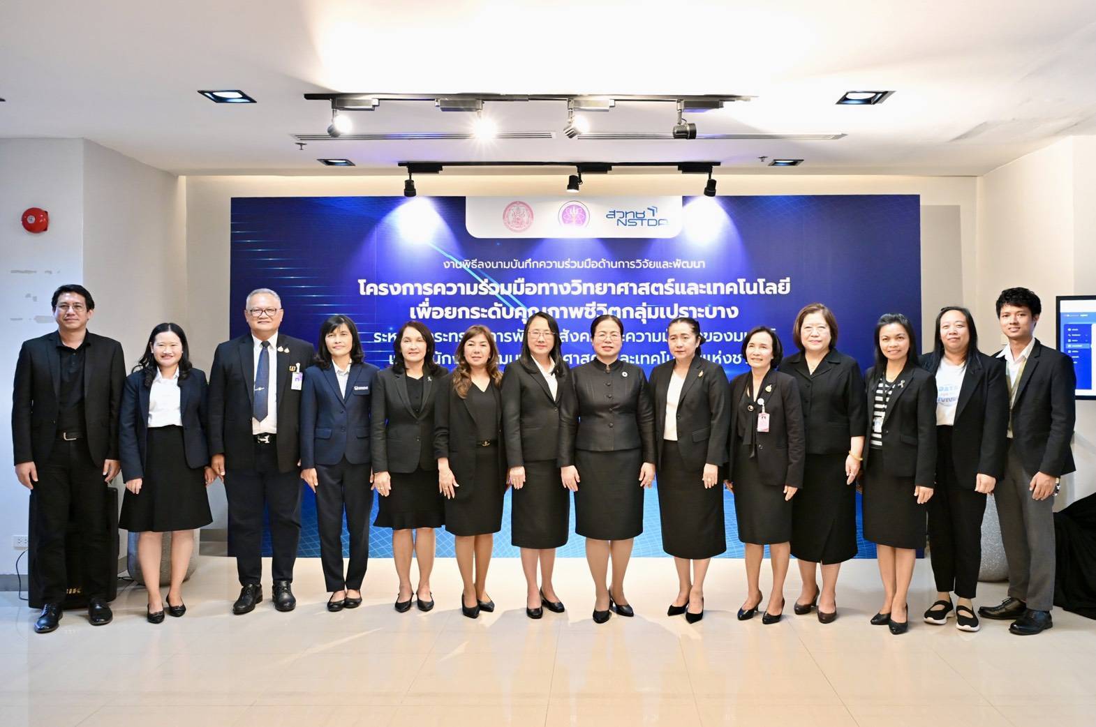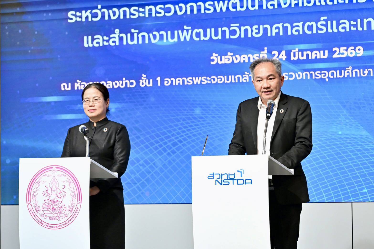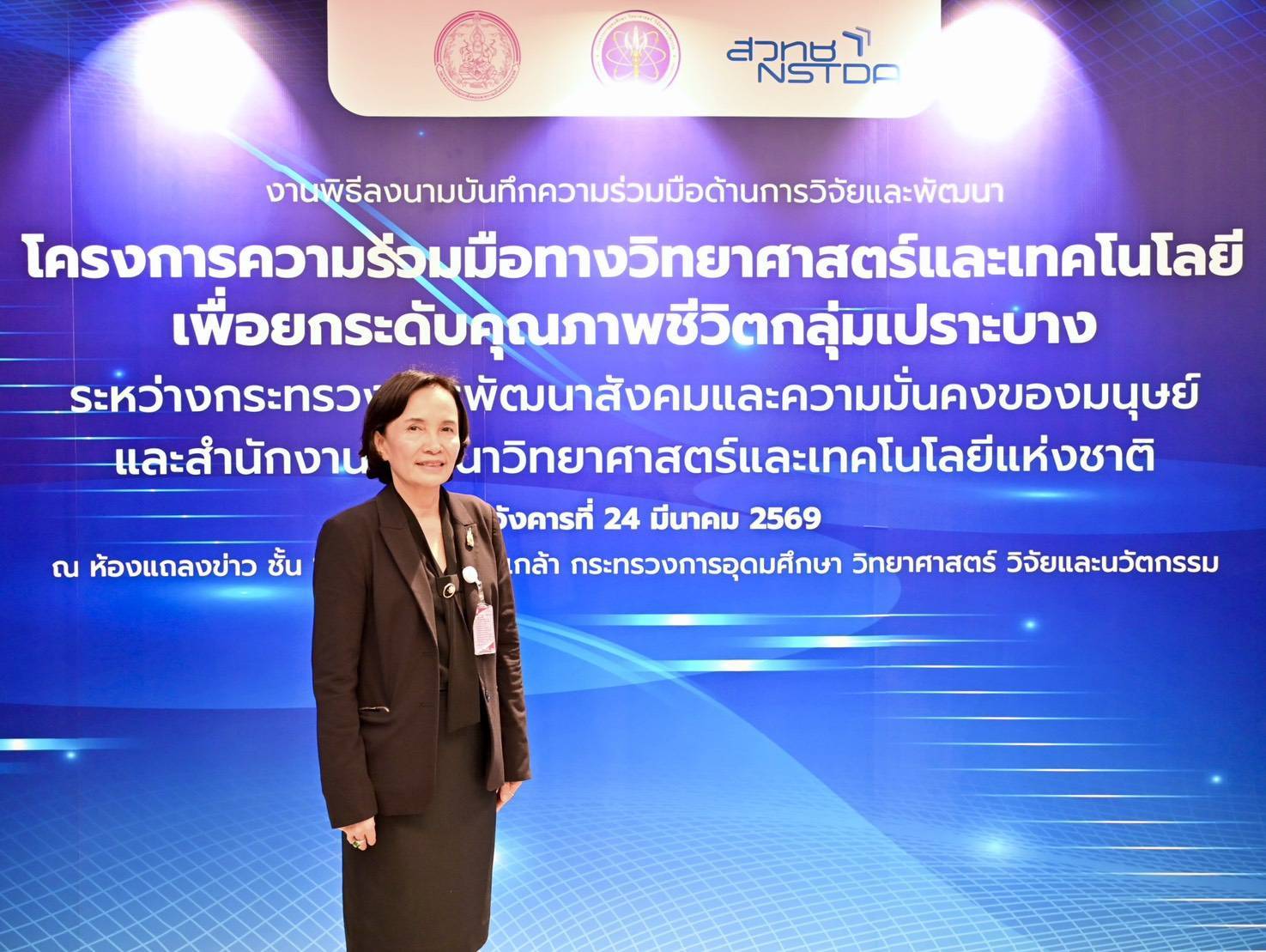 วันอังคารที่ 24 มีนาคม พ.ศ. 2569 เวลา 13.00 น. นายโชคชัย วิเชียรชัยยะ อธิบดีกรมกิจการผู้สูงอายุ มอบหมายให้ นางวาสนา ทองจันทร์ รองอธิบดีกรมกิจการผู้สูงอายุ เข้าร่วมพิธีลงนามบันทึกข้อตกลงความร่วมมือด้านการวิจัยและพัฒนา ภายใต้โครงการความร่วมมือทางวิทยาศาสตร์และเทคโนโลยี เพื่อยกระดับคุณภาพชีวิตกลุ่มเปราะบาง ระหว่างกระทรวงการพัฒนาสังคมและความมั่นคงของมนุษย์ และ สำนักงานพัฒนาวิทยาศาสตร์และเทคโนโลยีแห่งชาติ โดยมี ศาสตราจารย์ ดร.ศุภชัย ปทุมนากุล ปลัดกระทรวงการอุดมศึกษา วิทยาศาสตร์ วิจัยและนวัตกรรม กล่าวต้อนรับ พร้อมด้วย นางเตือนใจ คงสมบัติ รองปลัดกระทรวงการพัฒนาสังคมและความมั่นคงของมนุษย์ และ ศาสตราจารย์ ชูกิจ ลิมปิจำนงค์ ผู้อำนวยการสำนักงานพัฒนาวิทยาศาสตร์และเทคโนโลยีแห่งชาติ ร่วมแสดงเจตจำนงความร่วมมือ โดยมีคณะผู้บริหารกระทรวง พม. คณะผู้บริหาร สวทช. ข้าราชการ และเจ้าหน้าที่ที่เกี่ยวข้องเข้าร่วม ณ ห้องประชุมแถลงข่าว ชั้น 1 อาคารพระจอมเกล้า กระทรวงการอุดมศึกษา วิทยาศาสตร์ วิจัยและนวัตกรรม