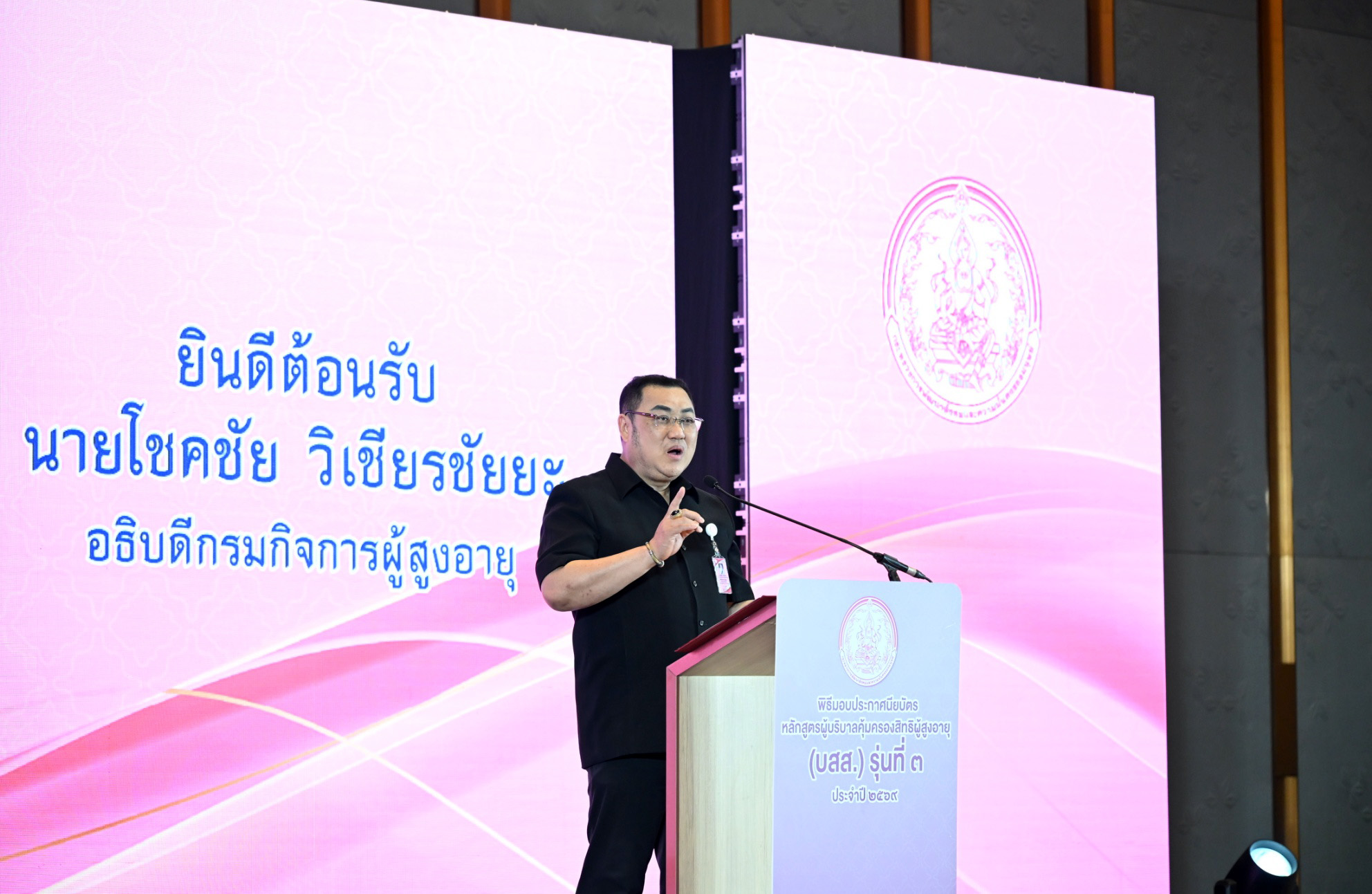 วันพุธที่ 25 มีนาคม พ.ศ. 2569 เวลา 16.00 น. นายโชคชัย วิเชียรชัยยะ อธิบดีกรมกิจการผู้สูงอายุ เป็นประธานเปิดกิจกรรม “เตรียมความพร้อมผู้บริบาลคุ้มครองสิทธิผู้สูงอายุก่อนการปฏิบัติงาน” เพื่อเสริมสร้างความรู้ ทักษะ และความพร้อมในการดูแลและคุ้มครองสิทธิผู้สูงอายุอย่างมีประสิทธิภาพ โดยมี นางวรรณภา สุขคง และนางวาสนา ทองจันทร์ รองอธิบดีกรมกิจการผู้สูงอายุ พร้อมด้วยผู้บริหาร เจ้าหน้าที่ และผู้บริบาลคุ้มครองสิทธิผู้สูงอายุ เข้าร่วม ณ โรงแรมแกรนด์ริชมอนด์ คอนเวนชั่น แอนด์ โฮเทล จังหวัดนนทบุรี