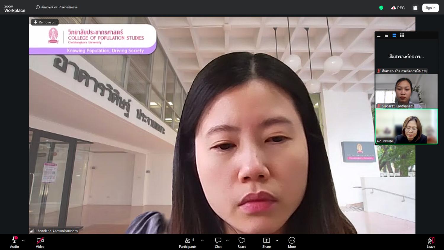 โดยมี ดร.ชลธิชา อัศวนิรันดร สังกัดวิทยาลัยประชากรศาสตร์ จุฬาลงกรณ์มหาวิทยาลัย เป็นผู้สัมภาษณ์ พร้อมด้วยเจ้าหน้าที่ที่เกี่ยวข้องเข้าร่วมผ่านระบบประชุมทางไกล Zoom Meeting