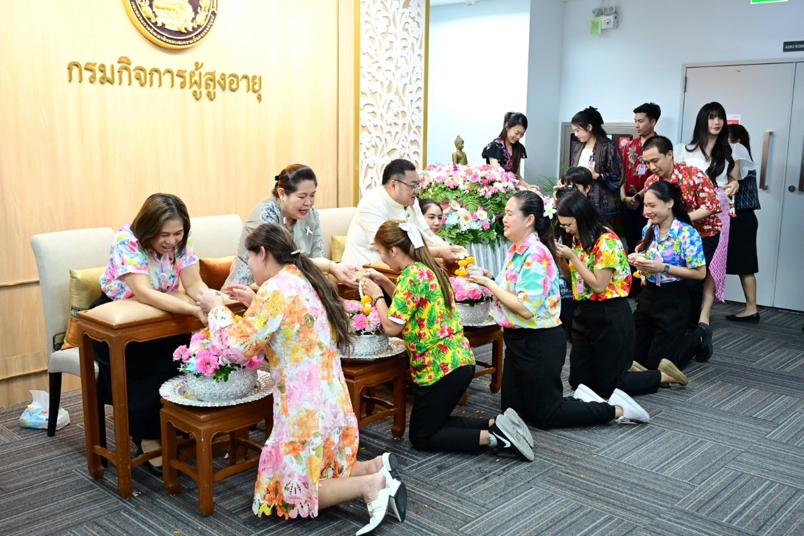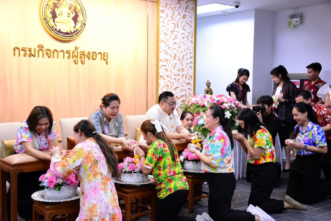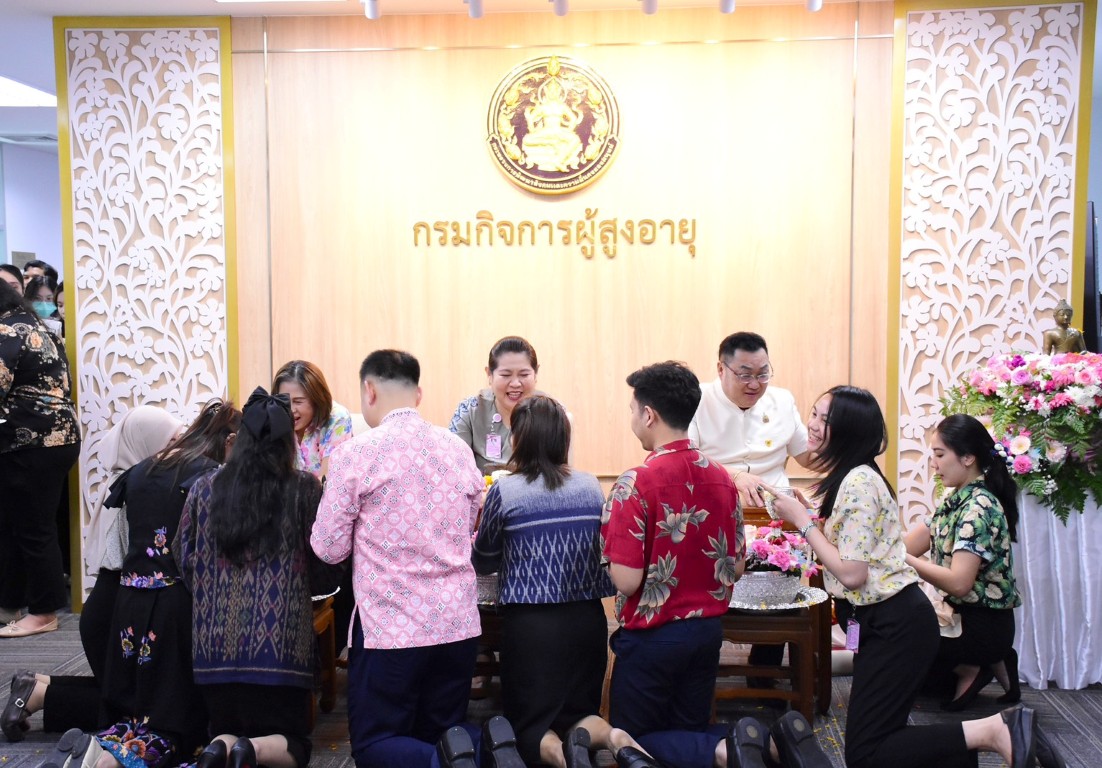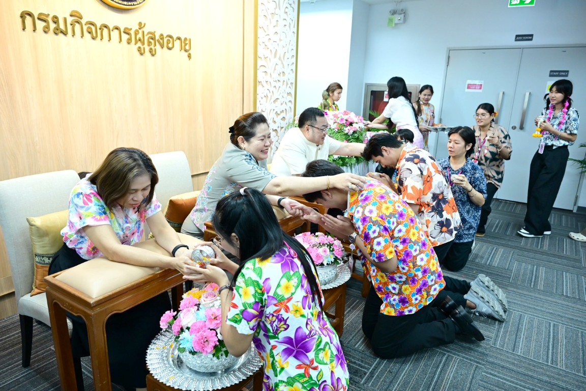 วันพฤหัสบดีที่ 9 เมษายน พ.ศ. 2569 เวลา 14.30 น. นายโชคชัย วิเชียรชัยยะ อธิบดีกรมกิจการผู้สูงอายุ เป็นประธานในกิจกรรม “สืบสานสงกรานต์ไทย สานสายใย ผส. ประจำปี 2569” พร้อมให้โอวาสในการปฏิบัติงาน และกล่าวอวยพรเนื่องในเทศกาลสงกรานต์ โดยมีนางวรรณภา สุขคง รองอธิบดีกรมกิจการผู้สูงอายุ นางสาวกอบกุล กวั่งซ้วน ผู้เชี่ยวชาญเฉพาะด้านผู้สูงอายุ ผู้อำนวยการกอง/กลุ่ม ผู้อำนวยการศูนย์พัฒนาการจัดสวัสดิการสังคมผู้สูงอายุ และเจ้าหน้าที่ในสังกัดกรมกิจการผู้สูงอายุ เข้าร่วมกิจกรรม ณ บริเวณโถงชั้น 7 กรมกิจการผู้สูงอายุ อาคารกระทรวงการพัฒนาสังคมและความมั่นคงของมนุษย์ กรุงเทพมหานคร ทั้งนี้ ภายในกิจกรรมมีการสรงน้ำพระ และพิธีรดน้ำดำหัวคณะผู้บริหาร เพื่อความเป็นสิริมงคล แสดงความเคารพ และร่วมกันสืบสานประเพณีอันดีงามของไทยในช่วงเทศกาลสงกรานต์