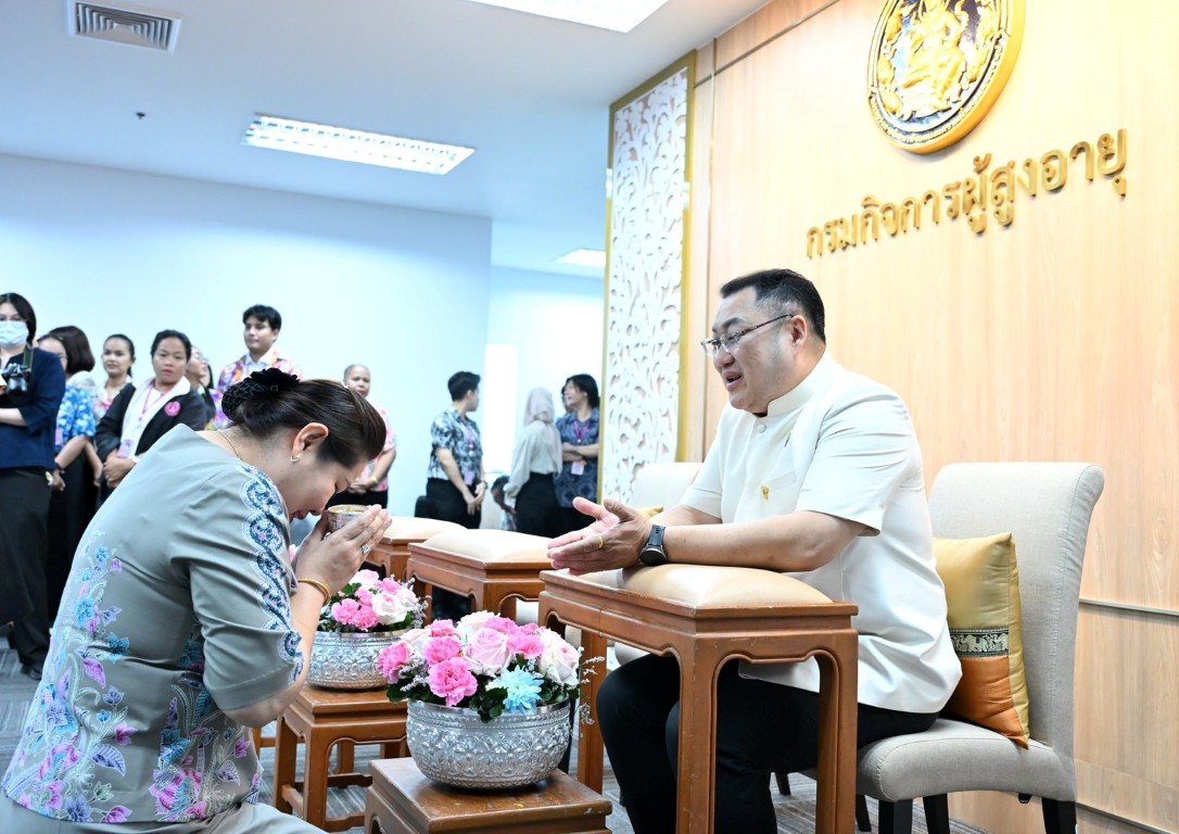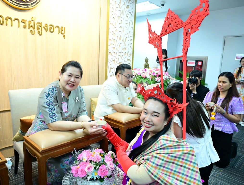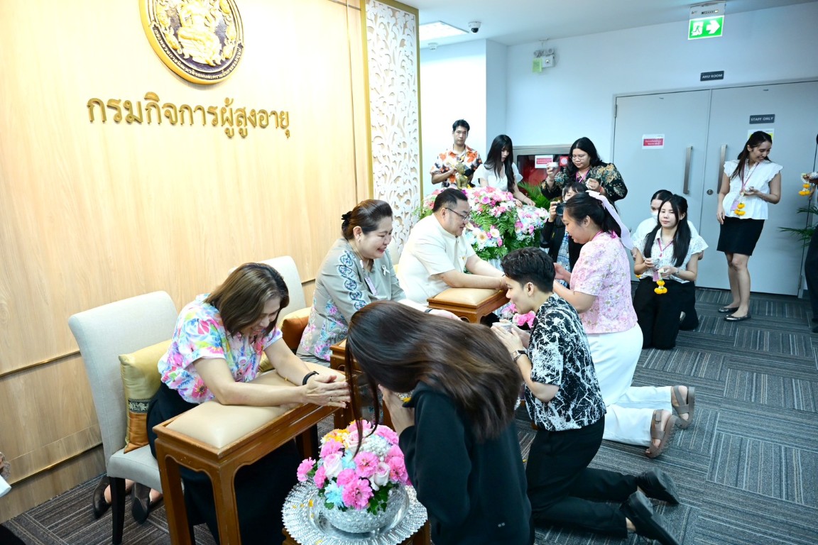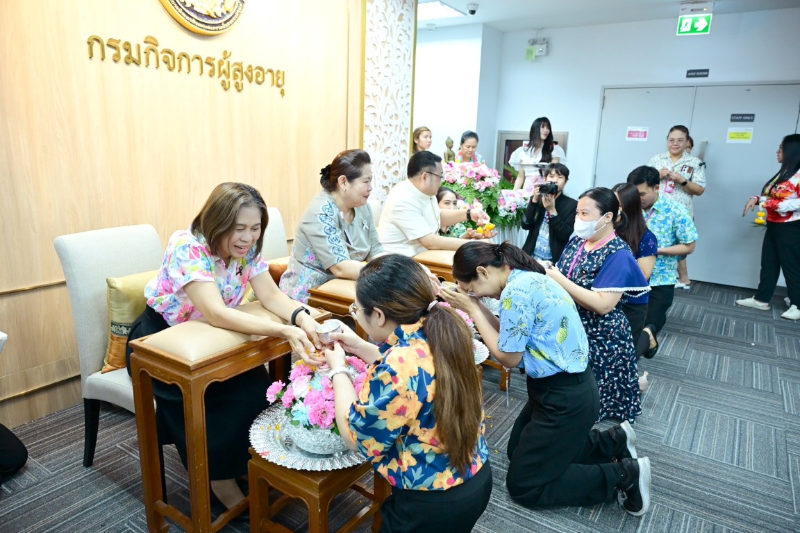วันพฤหัสบดีที่ 9 เมษายน พ.ศ. 2569 เวลา 14.30 น. นายโชคชัย วิเชียรชัยยะ อธิบดีกรมกิจการผู้สูงอายุ เป็นประธานในกิจกรรม “สืบสานสงกรานต์ไทย สานสายใย ผส. ประจำปี 2569” พร้อมให้โอวาสในการปฏิบัติงาน และกล่าวอวยพรเนื่องในเทศกาลสงกรานต์ โดยมีนางวรรณภา สุขคง รองอธิบดีกรมกิจการผู้สูงอายุ นางสาวกอบกุล กวั่งซ้วน ผู้เชี่ยวชาญเฉพาะด้านผู้สูงอายุ ผู้อำนวยการกอง/กลุ่ม ผู้อำนวยการศูนย์พัฒนาการจัดสวัสดิการสังคมผู้สูงอายุ และเจ้าหน้าที่ในสังกัดกรมกิจการผู้สูงอายุ เข้าร่วมกิจกรรม ณ บริเวณโถงชั้น 7 กรมกิจการผู้สูงอายุ อาคารกระทรวงการพัฒนาสังคมและความมั่นคงของมนุษย์ กรุงเทพมหานคร ทั้งนี้ ภายในกิจกรรมมีการสรงน้ำพระ และพิธีรดน้ำดำหัวคณะผู้บริหาร เพื่อความเป็นสิริมงคล แสดงความเคารพ และร่วมกันสืบสานประเพณีอันดีงามของไทยในช่วงเทศกาลสงกรานต์