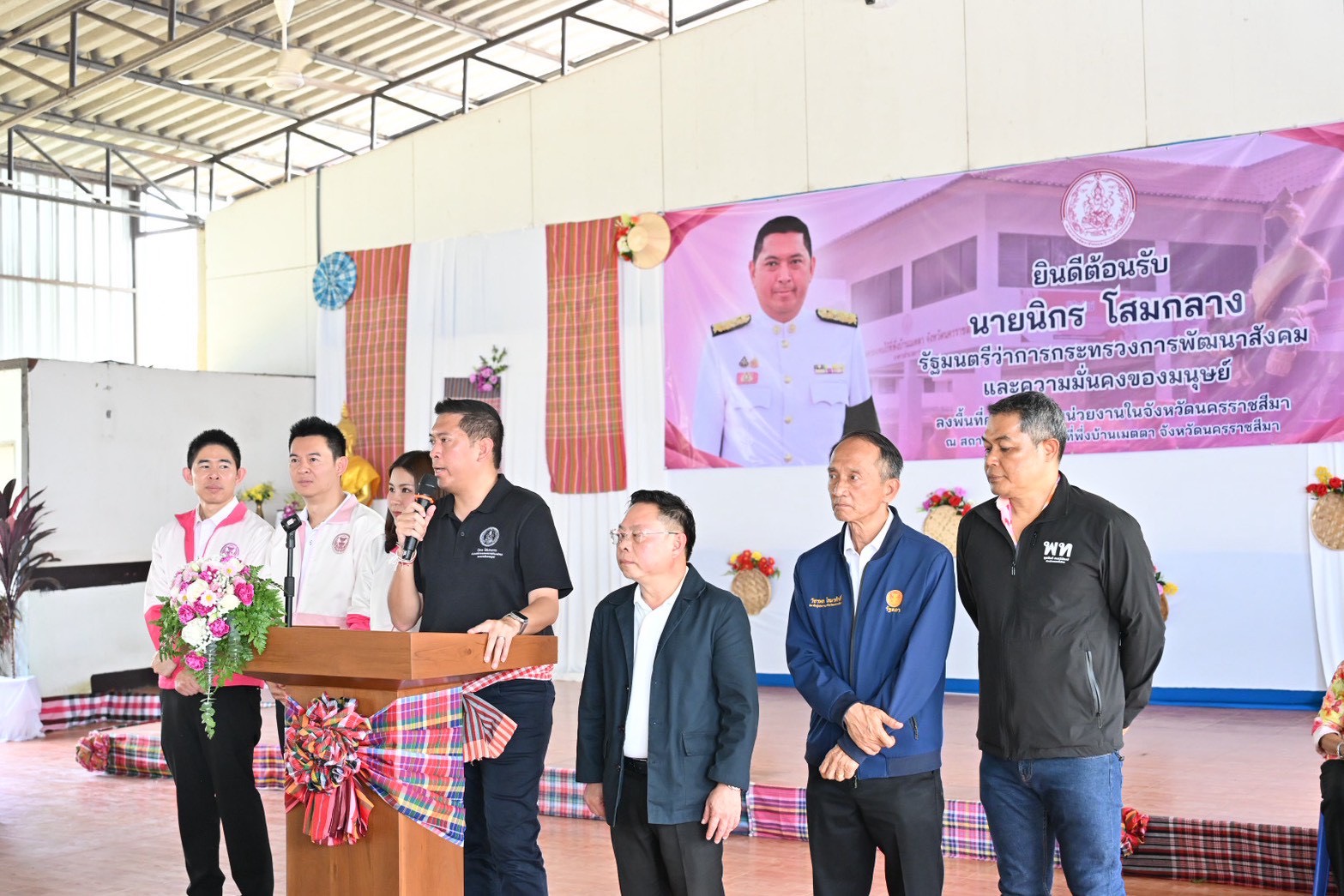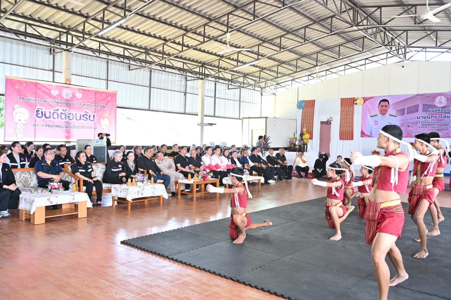 วันพฤหัสบดีที่ 17 เมษายน พ.ศ. 2569 เวลา 10.15 น. ณ สถานคุ้มครองคนไร้ที่พึ่งบ้านเมตตา จังหวัดนครราชสีมา นายนิกร โสมกลาง รัฐมนตรีว่าการกระทรวงการพัฒนาสังคมและความมั่นคงของมนุษย์ (รมว.พม.) ลงพื้นที่จังหวัดนครราชสีมา เพื่อขับเคลื่อนงานพัฒนาคุณภาพชีวิตกลุ่มเป้าหมายทุกช่วงวัยในระดับจังหวัด โดยเยี่ยมให้กำลังใจผู้รับบริการและเจ้าหน้าที่ผู้ปฏิบัติงาน พร้อมมอบเครื่องอุปโภคบริโภคที่จำเป็นแก่ผู้รับบริการ เเละมอบบัตรผู้แสดงความสามารถ ตลอดจนเยี่ยมชมกิจกรรมและผลงานของโครงการทักษะอาชีพผู้ใช้บริการ รวมทั้งกิจกรรมรำวงพื้นบ้าน โดยกลุ่มจิตอาสาโรงพยาบาลมหาราชนครราชสีมา โดยมี นายโชคชัย วิเชียรชัยยะ อธิบดีกรมกิจการผู้สูงอายุ นางวรรณภา สุขคง รองอธิบดีกรมกิจการผู้สูงอายุ คณะผู้บริหารกระทรวง พม. นายมนัส สุวรรณรินทร์ รองผู้ว่าราชการจังหวัดนครราชสีมา ดร.ยลดา หวังศุภกิจโกศล นายกองค์การบริหารส่วนจังหวัดนครราชสีมา พัฒนาสังคมและความมั่นคงของมนุษย์จังหวัดนครราชสีมา พร้อมทีม พม. จังหวัดนครราชสีมา ผู้บริหารท้องถิ่น ผู้แทนเครือข่าย และอาสาสมัครพัฒนาสังคมและความมั่นคงของมนุษย์ (อพม.) ร่วมลงพื้นที่