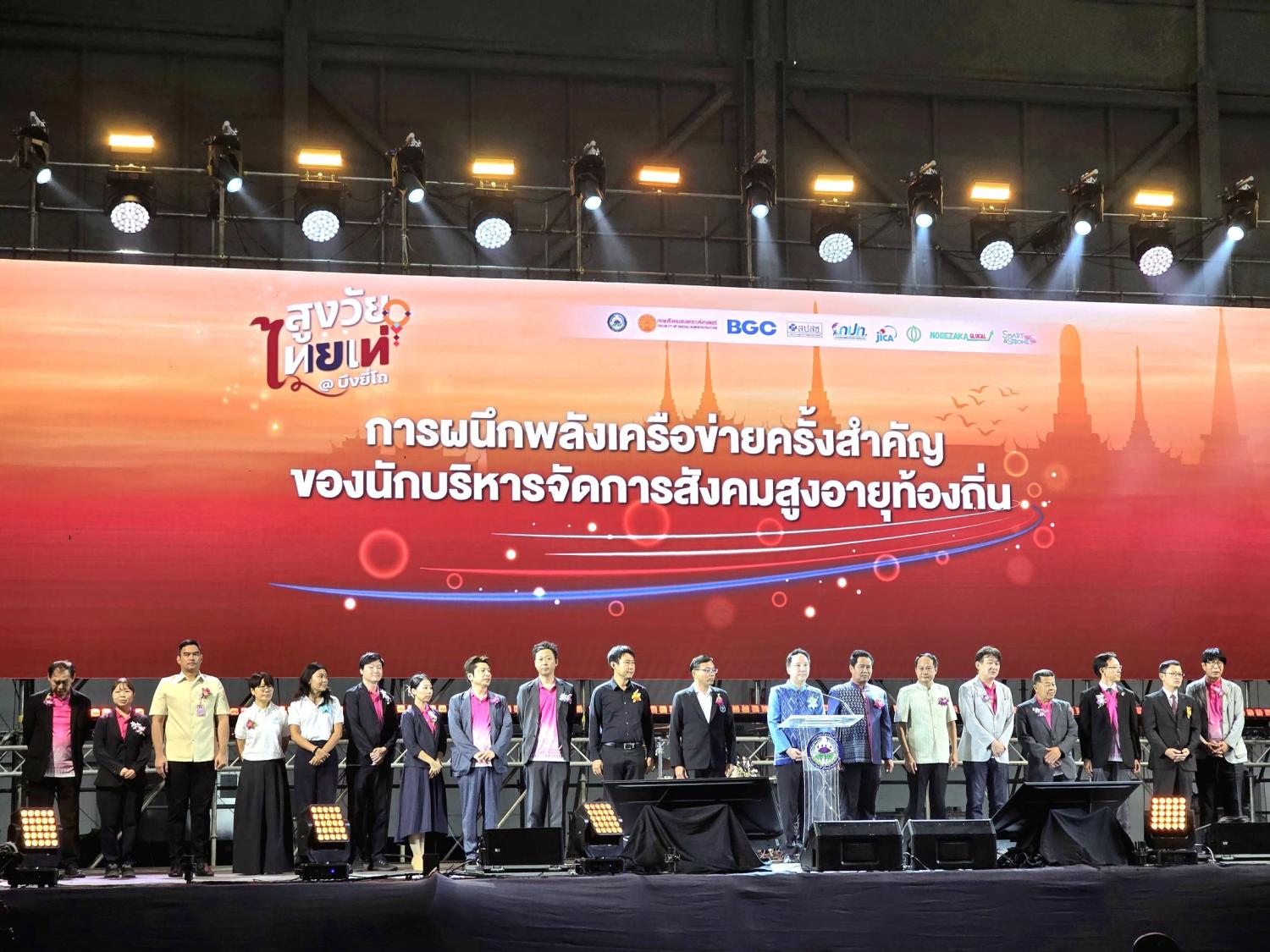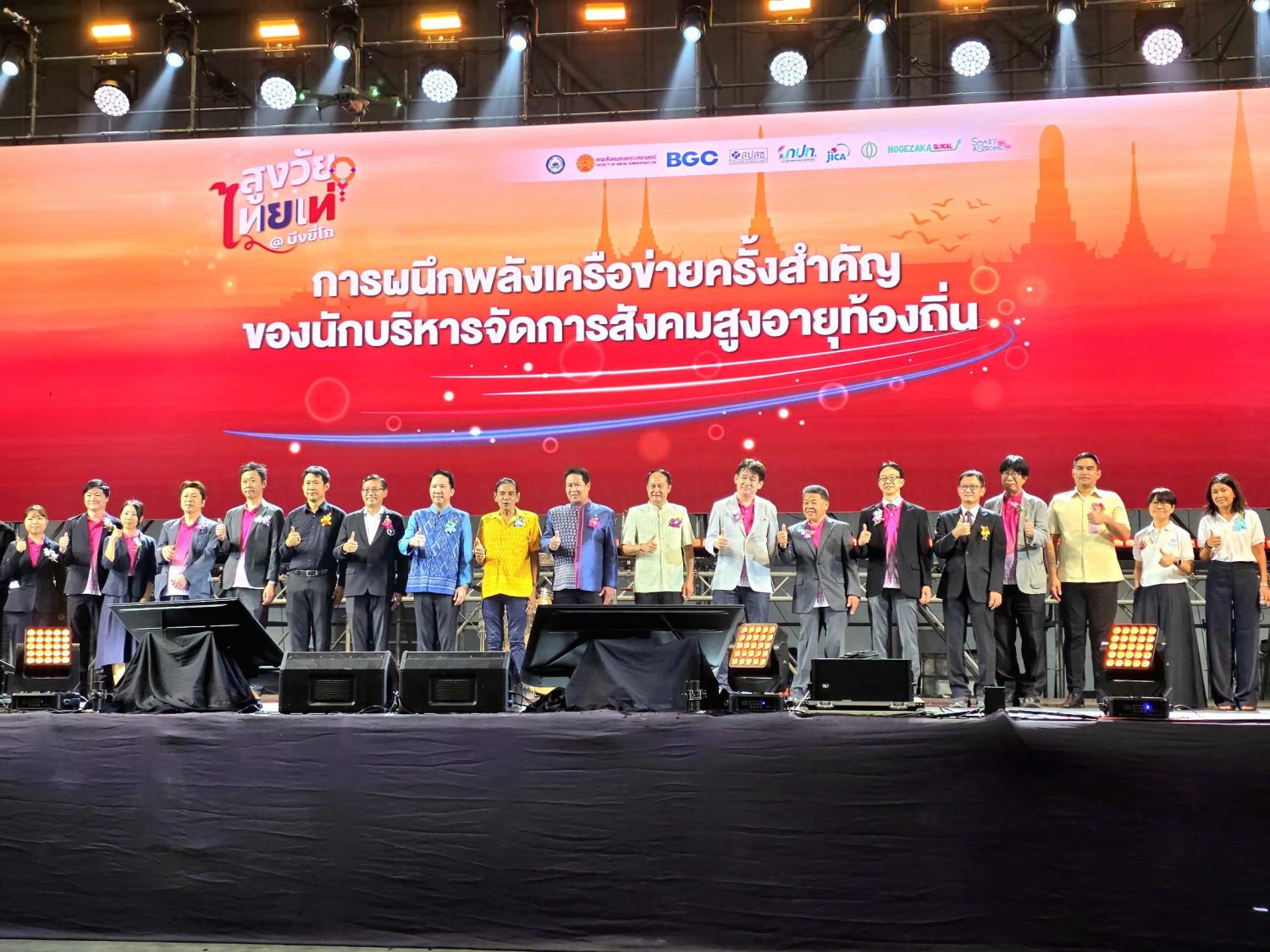 วันพฤหัสบดีที่ 23 เมษายน พ.ศ. 2569 เวลา 09.00 น. กรมกิจการผู้สูงอายุ ร่วมงานมหกรรมสุขภาพการบูรณาการทุกมิติ เพื่อสิ่งที่ดีต่อสังคมผู้สูงอายุ “สูงวัยไทยเท่ @ บึงยี่โถ” ภายใต้โครงการบูรณาการการพัฒนาการจัดบริการสำหรับผู้สูงอายุในชุมชน ผ่านการสร้างเครือข่ายองค์กรปกครองส่วนท้องถิ่นในประเทศ โดยมี นายพงศธร กาญจนะจิตรา รองผู้ว่าราชการจังหวัดปทุมธานี เป็นประธานในพิธีฯ นายโยชิฟูมิ ไนโตะ นายกเทศมนตรีเมืองยูกาวาระ นายชุนสุเกะ ซาคุโดะ หัวหน้าผู้แทนสำนักงาน JICA ประจำประเทศไทย นายรังสรรค์ นันทกาวงศ์ นายกเทศมนตรีเมืองบึงยี่โถ พร้อมด้วย นายนิติเวท มีสงฆ์ หัวหน้ากลุ่มพัฒนาระบบบริหาร นางสาวชนภัทร พ่วงเภตรา ผู้อำนวยการกลุ่มระบบการดูแลและเฝ้าระวังทางสังคมผู้สูงอายุ ข้าราชการ และเจ้าหน้าที่ในสังกัดกรมกิจการผู้สูงอายุ เข้าร่วม ณ BG Hall บริษัท บางกอกกล๊าส จำกัด (มหาชน)