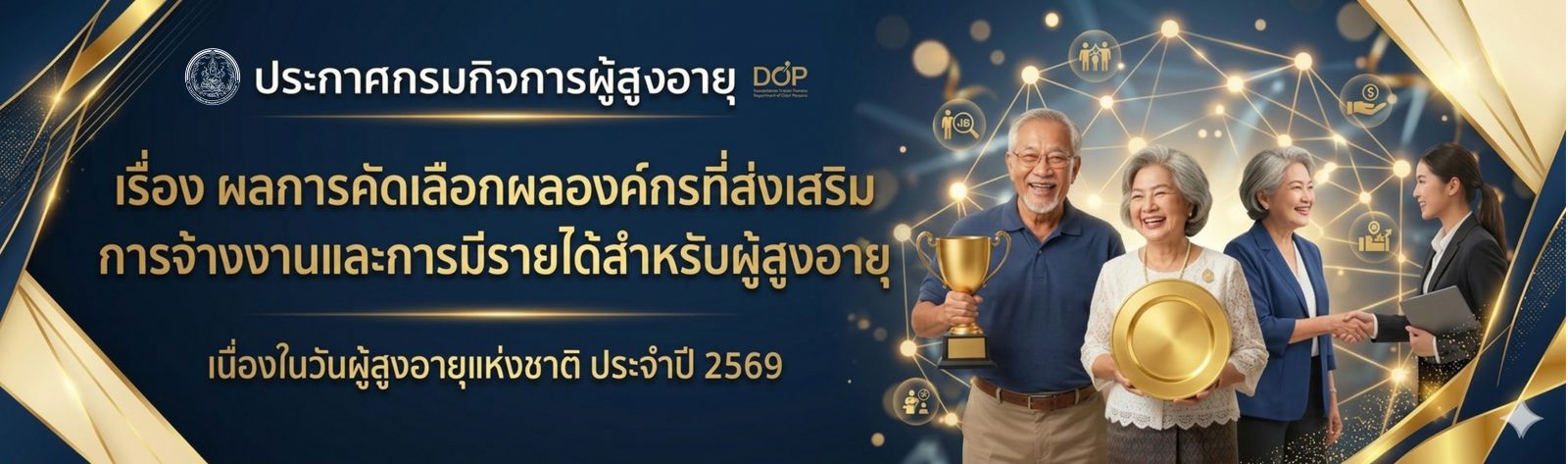 ประกาศกรมกิจการผู้สูงอายุ เรื่อง ผลการคัดเลือกผลองค์กรที่ส่งเสริมการจ้างงานและการมีรายได้สำหรับผู้สูงอายุ เนื่องในวันผู้สูงอายุแห่งชาติ ประจำปี 2569